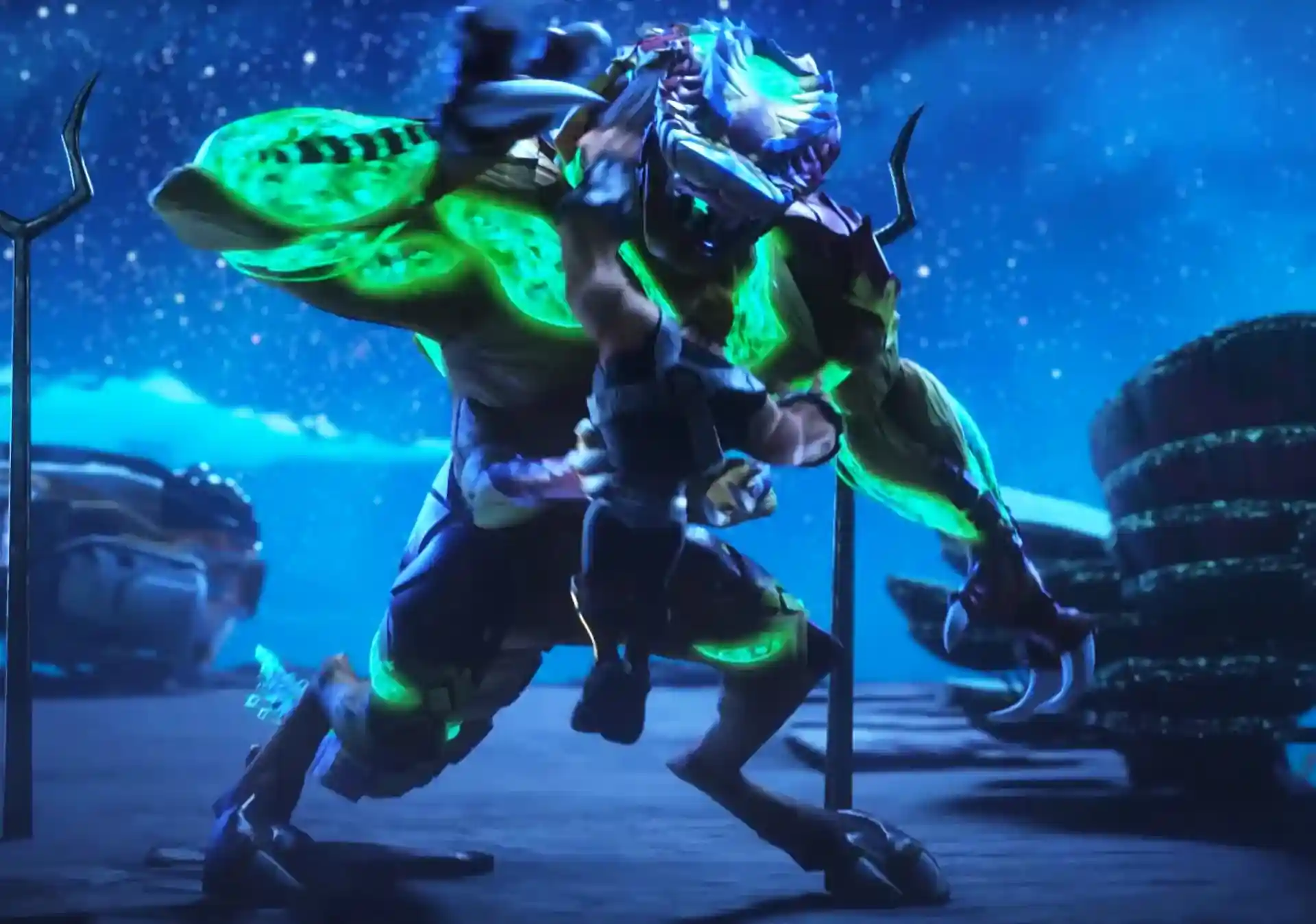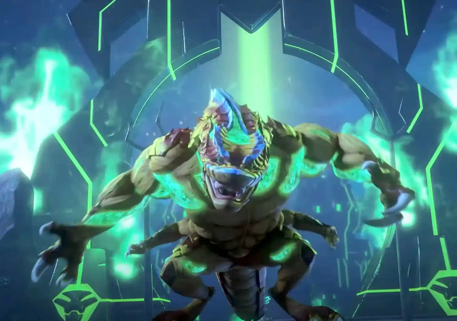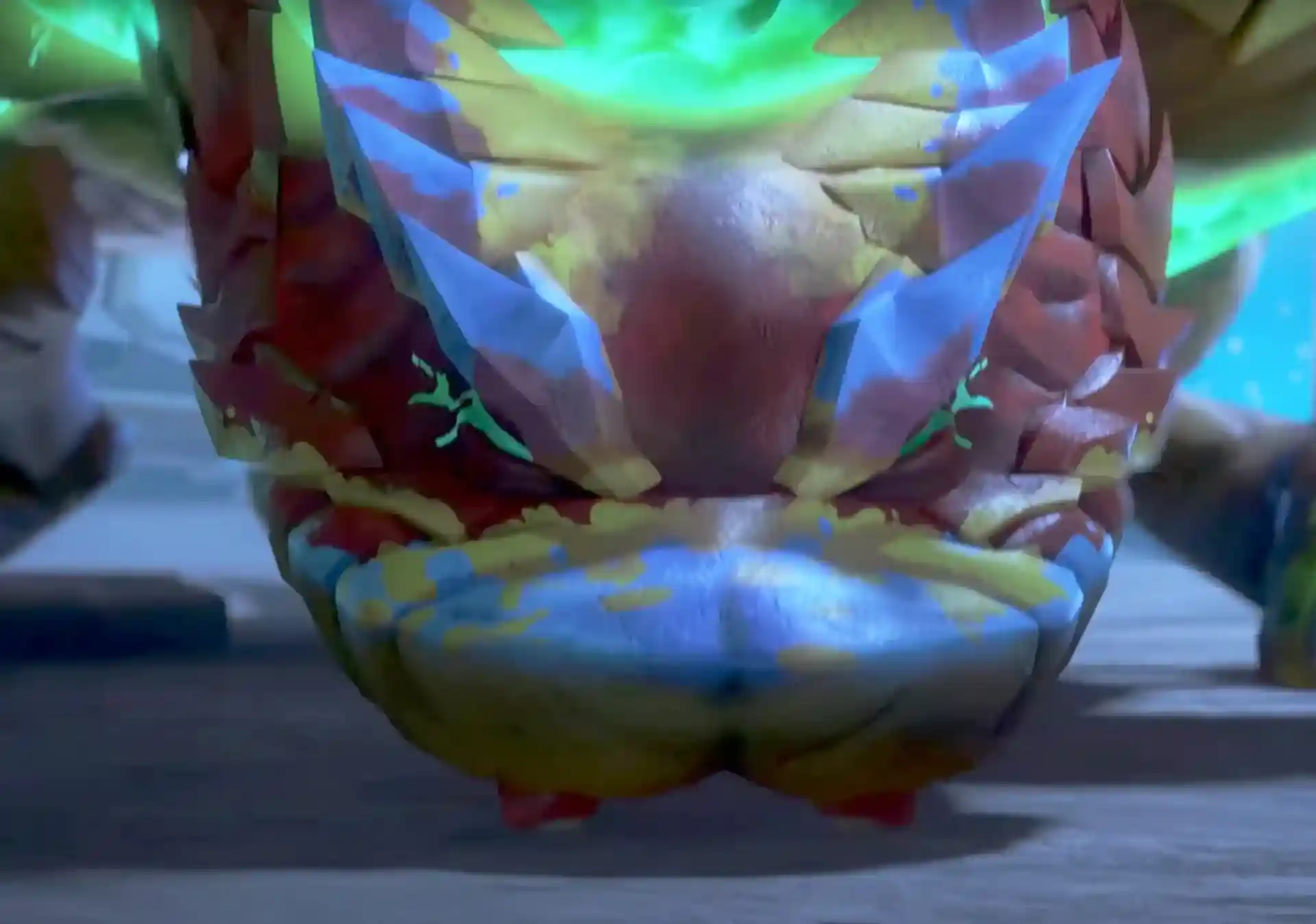 Based on the clips and trailers we’ve seen thus far from the Netflix animated CGI series, Rattlor’s color scheme harken’s back to his vintage figures color scheme with his classic burgundy, blue, and yellow style. In the close up image of his head, you can see his eyes have green energy running through them, tying the neon green in various parts of the figure together. You can also see the energy running through his tongue, the back of his head, his arms, and his tail.