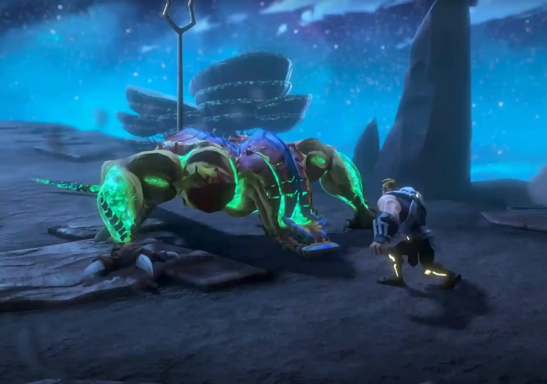From what we can see, Rattlor is gigantic and we are used to seeing all of the Masters of the Universe characters in the same scale but the Netlfix Animated CGI Series takes this further and gives Rattlor the design and stage presence he deserves.