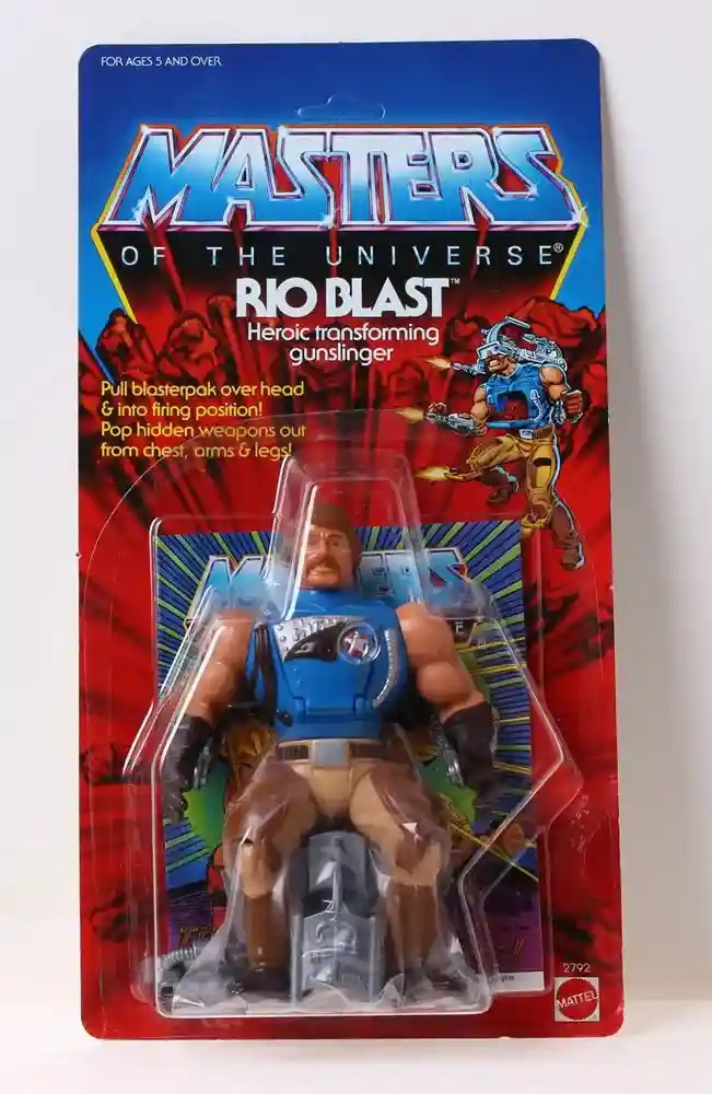 In terms of his backstory, Rio Blast is described as a nomad from the Galactic Wild West who possesses incredible shooting skills and high-tech enhancements. He aids He-Man and the other heroes in their battles against Skeletor and his minions.
