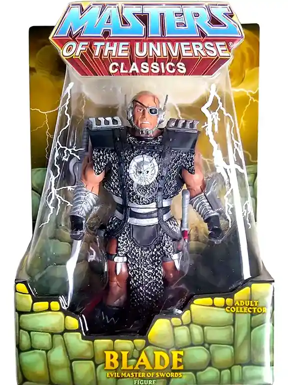 Blade was released in the vintage Masters of the Universe toy line in 1987, and included a sticker saying “Featured in the He-Man Movie”