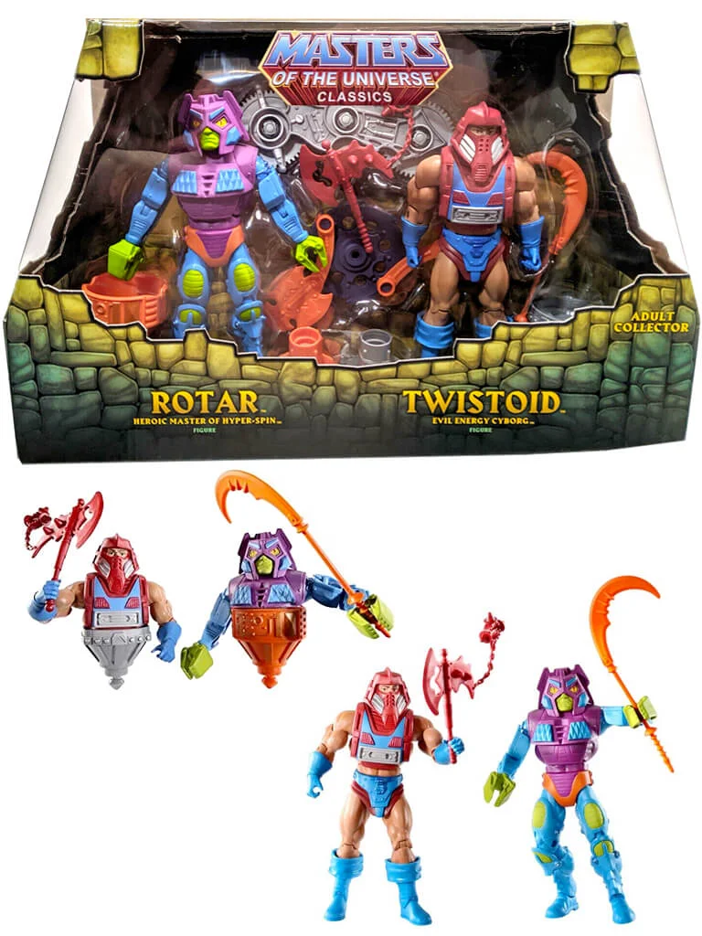 Twistoid was later as a two pack with his counterpart Rotar for the MOTU Classic line in 2015. Here ,they actually came with human legs that can be switched out for their rotating lower bodies.