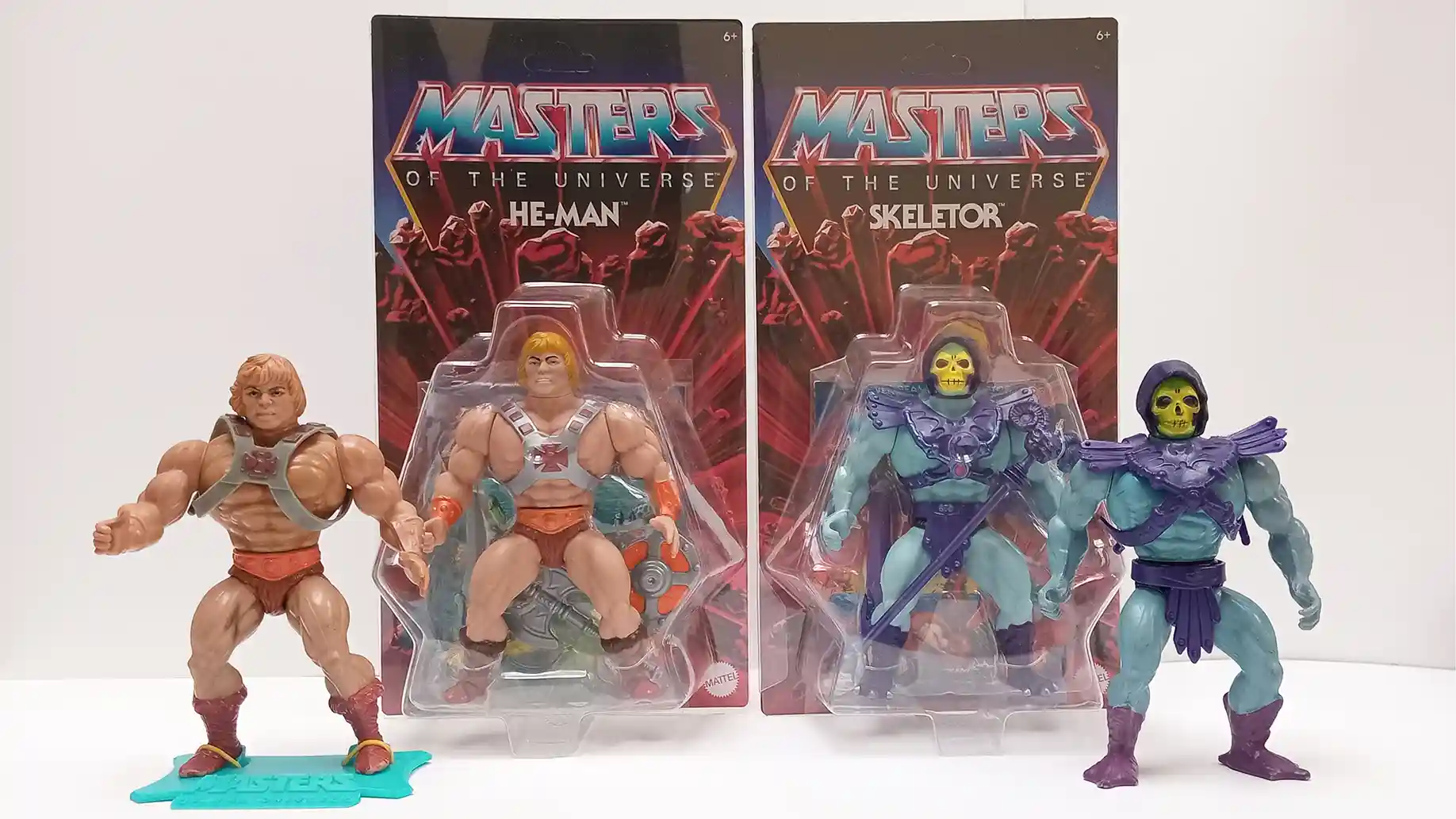 Masterversal Toyhunter lines up the vintage He-Man and Skeletor alongside their Origins 80th Anniversary counterparts for a striking side-by-side. The originals show their classic proportions and aged plastic charm, while the new figures remain locked in their blister bubbles with sharper sculpts and brighter paint. It’s a great way to see how the retro punching action was carried forward into modern form while keeping that unmistakable vintage spirit intact.