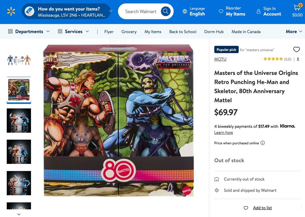 Target has put up the Retro Punching He-Man and Skeletor MOTU Origins 80th Anniversary 2-Pack for preorder and it is now finally in stock!. This nostalgic Masters of the Universe Origins 2-pack celebrates the 80th Anniversary of Mattel and really packs a punch, with retro-style He-Man and Skeletor figures with punching action! A classic hero versus villain pack, the figures are designed at 5.5-inch scale with their original articulation and vintage-style “squishy” heads. The fun-filled “twist and punch” movements on both set them up for epic good vs. evil battles. Skeletor comes with a sword, havoc staff and removable chest and skirt armor. He-Man has a sword, a shield and an axe, and removable signature chest harness. The two swords can combine to create a Power Sword! Two vintage mini-comics included. UPDATE: As of October 2, 2025, this classic two-pack is now listed on Amazon but we are not sure if it’s a reseller or if this pack will be officially carried by the online retailer behemoth.