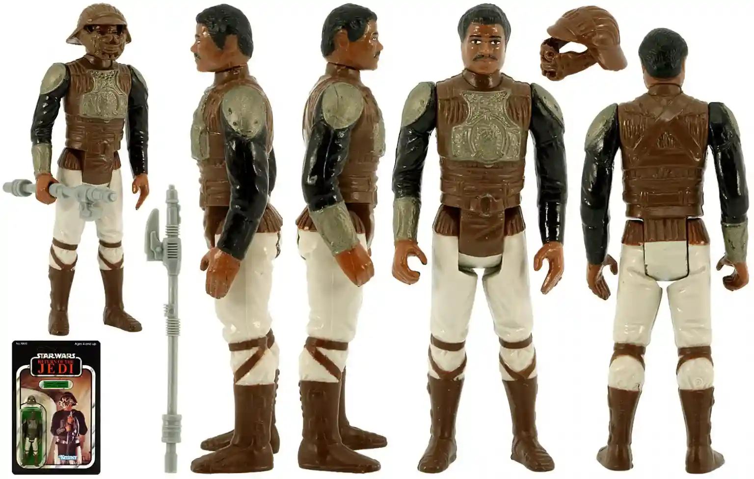 Here we can see what the 1983 Return of the Lando as Skiff Guard Disguise figure looked like. As you can see the new Retro Collection Version is a perfect Homage to this version. Thank you to the Return of the Jedi) Visual Guides (jeditemplearchives.com) for this great overview on this figure!