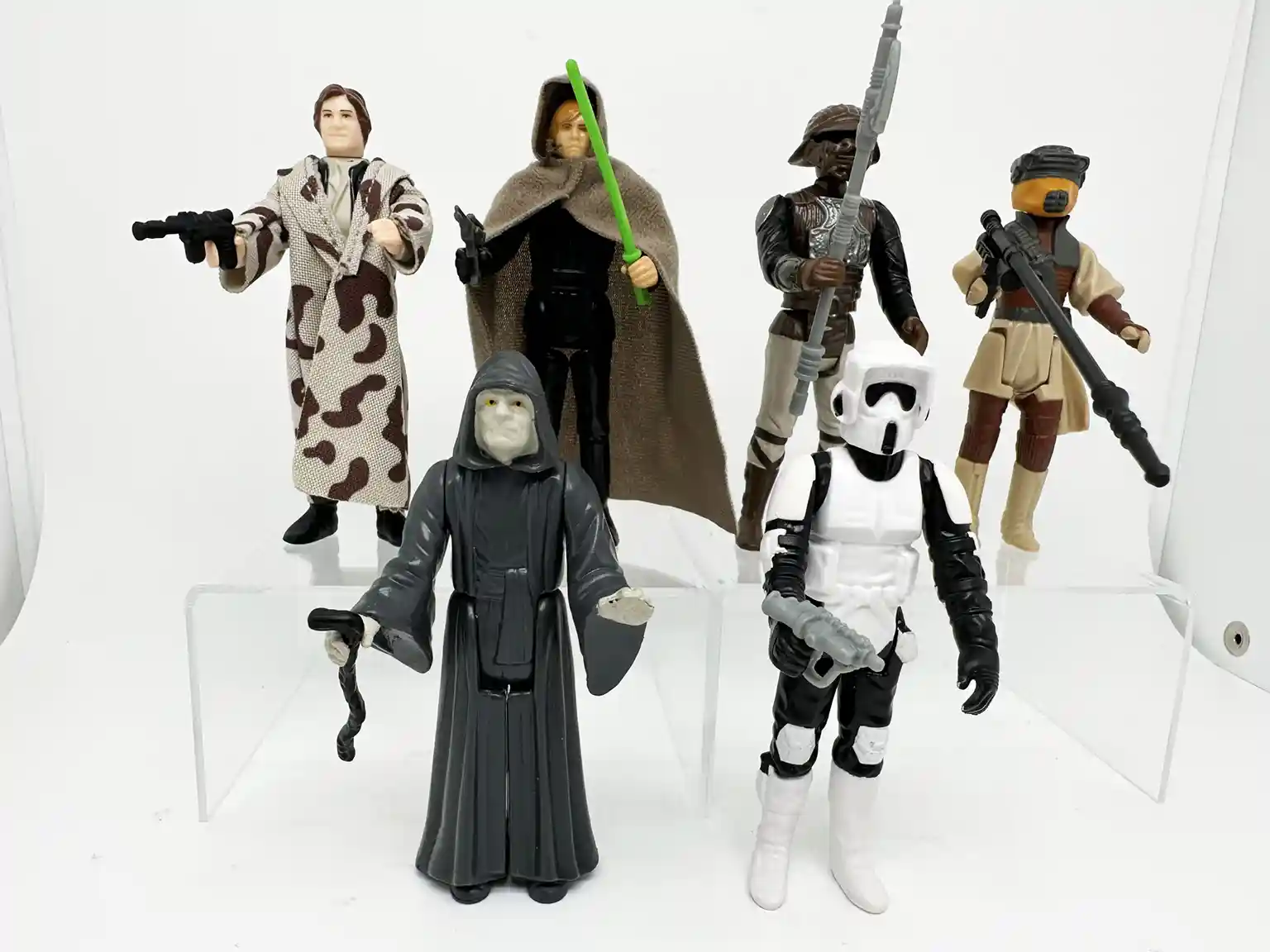 Kicking off the celebration for The Return of the Jedi’s 40th Anniversary, Hasbro finally brings us the long-awaited Return of the Jedi Retro Collection Figures! Ever since the Retro Collection hit retail shelves 3 years ago, fans could not wait to get the Return of the Jedi Figures! Hasbro started with a nostalgic New Wave Hope of 6 classic figures. Then they followed up with the Empire Strikes back figures. Now after waiting 3 years, the Return of the Jedi Retro figures are finally here, and they look amazing! These 5 POA figures are just like the ones we grew up with! Just like the plastic beauties we remember as kids, Han with his trench coat and we can finally army build those awesome biker scouts! After a long-awaited preorder wait, we now have the Return of the Jedi Retro Collection Figures for an in hand review!