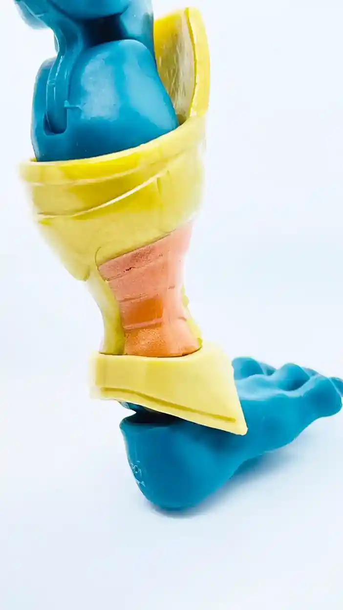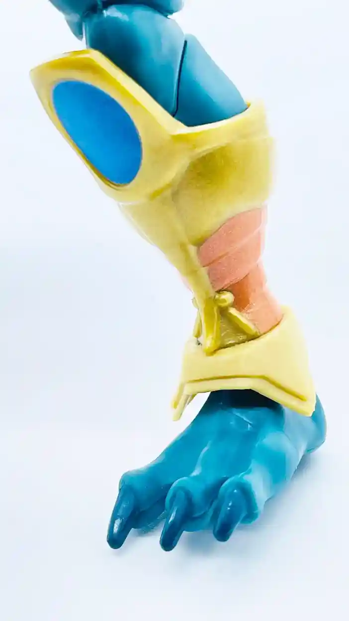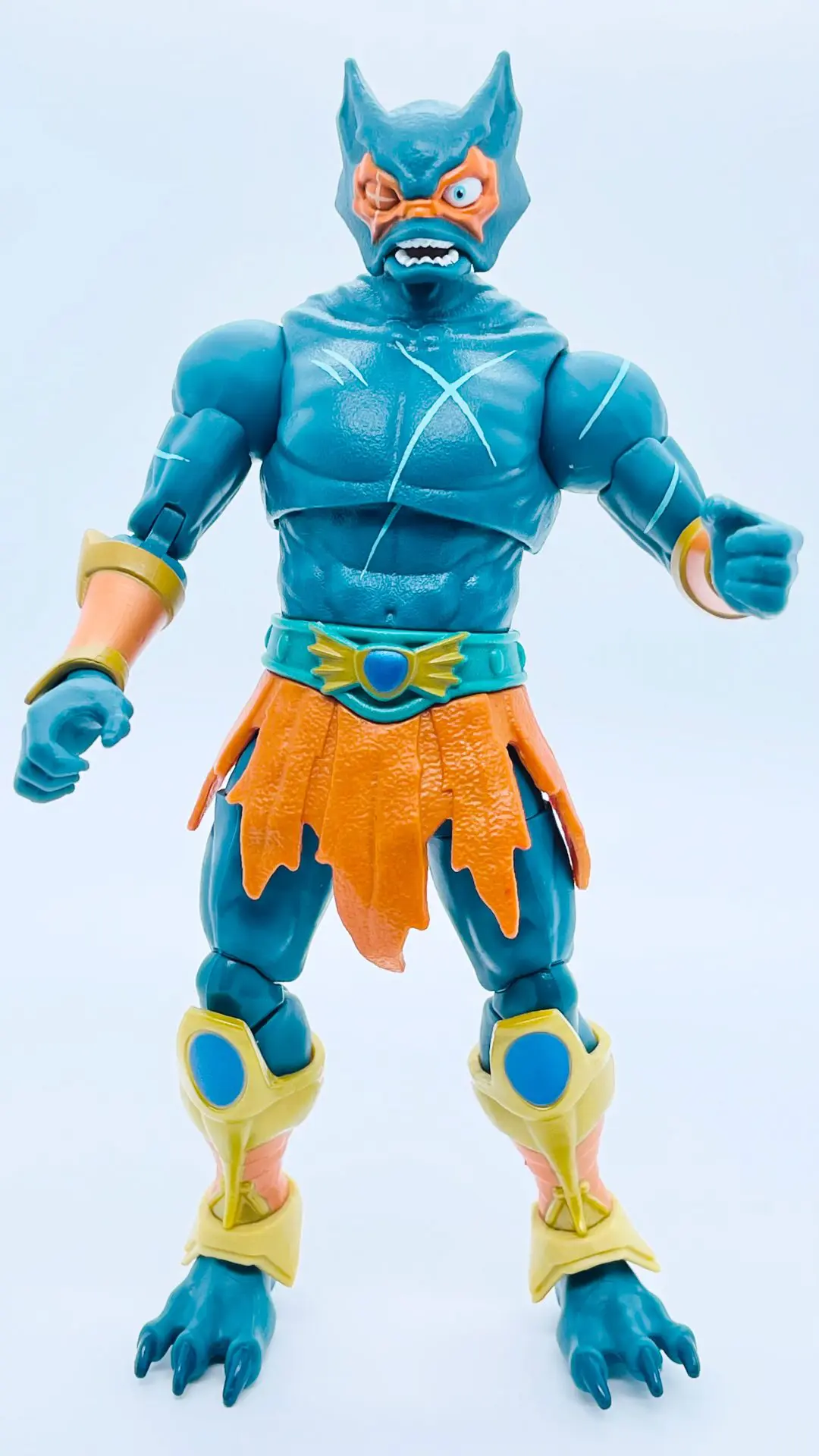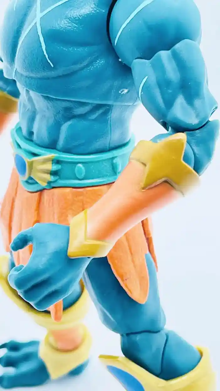 The legs are made from the standard Masterverse buck and seems to share the beast type with the exposed toes and shin armor. His feet are a reuse of the Revelation Skeletor but without the painted toenails. The shin armor however is unique design to this figure. It has gold trim, orange accents and sports a blue jewel at the top, giving his shin armor a more aquatic look. It has a very angular and refined look to it, which is a total juxtaposition to the savage look of this figure.