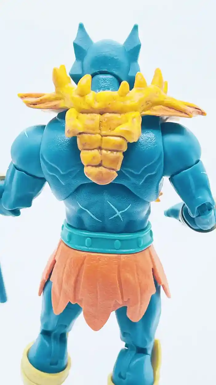 The Masters of the Universe Masterverse Revelation Mer-Man is the first figure to come out of Wave 4. When I first saw the figure at Power Con 2021, I loved the design and new approach but now that I have the real thing in hand, he looks like he stepped right out of the Netflix Revelation Cartoon! This is the savage battle hardened look of Mer-Man from the cartoon. Although I would have preferred for him to be packed with an alternate head and armor so that he can be displayed in both versions, in hand this figure is very cool. I picked up this figure early, because I was just too excited once I saw him in package! If you want to know where you can pick one up, see our New Eternia Masterverse Barbarian Skeletor & Merman Revelation IN STOCK article, to see where you can get yours! I’ve got to say, Mattel has been really knocking it out of the park on these latest figures from Wave 4. To see what me mean, check out this in-depth review on New Eternia Viking He-Man!