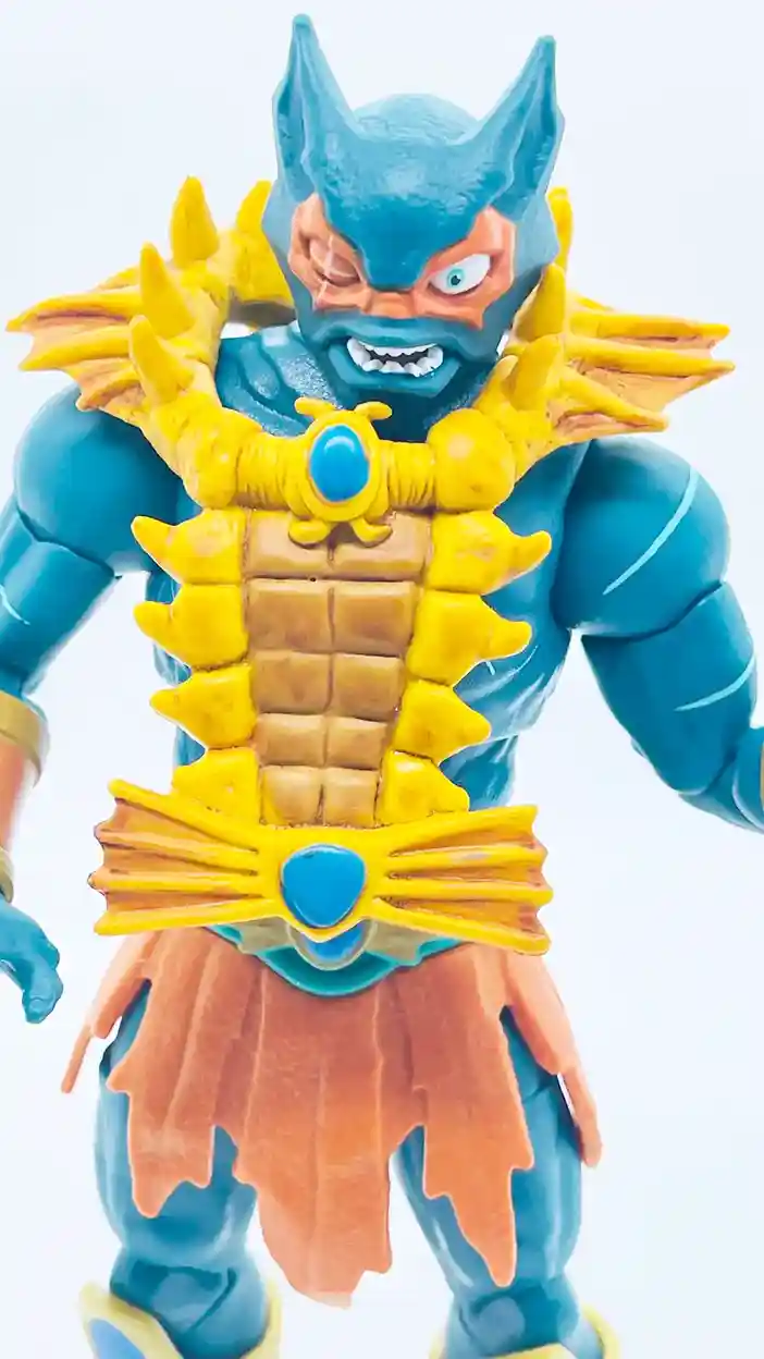 This Revelation Mer-Man head sculpt is a direct translation of the Netflix animated series! Representing the post battle hardened, apocalyptic look of Mer-Man. One eye is closed and seems to be scared from some battle Mer-Man went through that was not explained. I really would have preferred for them to package him an alternate head so you have the option to display him in his more classic look, but perhaps they will issue another version of Mer-Man and include his classic armor as well.