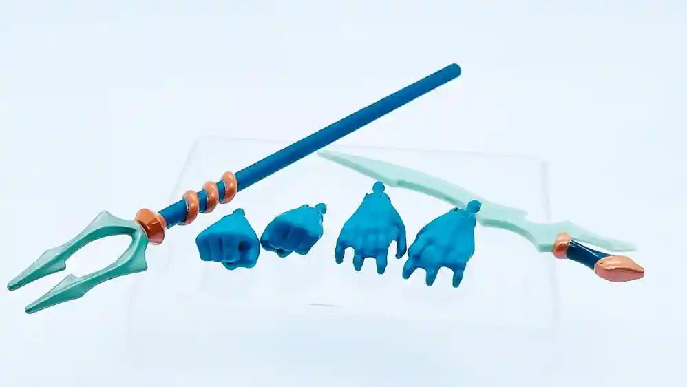 Mer-Man comes packed with a bident staff, a sword and 4 gripping hands. The lack of accessories compared to some of the other Revelation figures is a bit disappointing as he is a very simple figure, with no chest armor, so they certainly could have packed more with this Mer-Man figure. The accessories he does come with however are very cool, so let’s take a closer look.