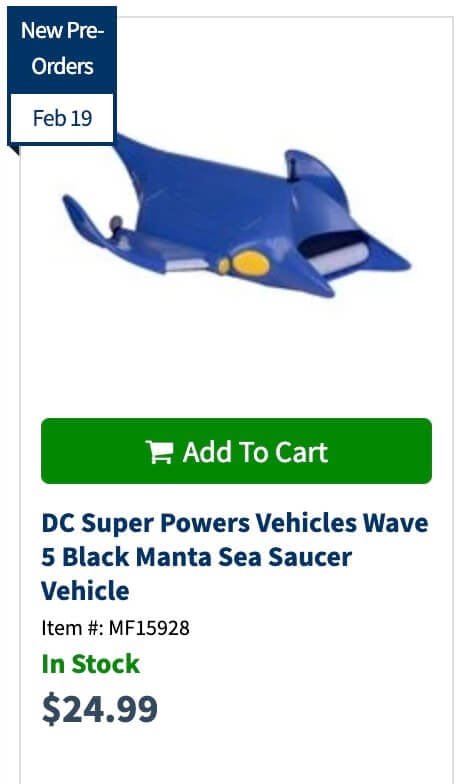 Prototype images were released of the Sea Saucer and Bat-Multicraft. Below you can see Black Manta sitting in the Sea Saucer!