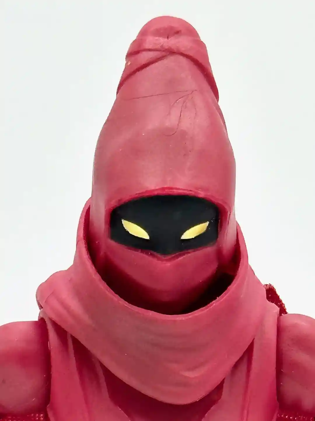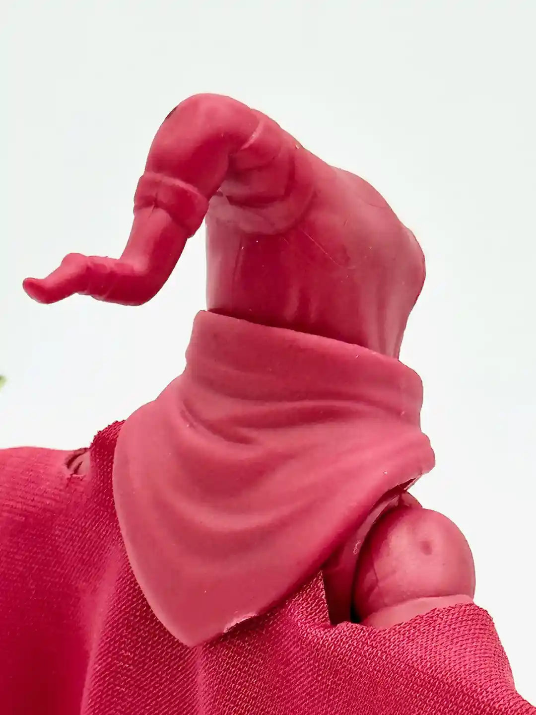 You can only see Shadow Weaver’s glowing eyes (they really don’t glow but the black against the yellow really sets them off) through the opening in her hood, which comes to a crooked point in the back. She also has a scarf collar that is also removable.