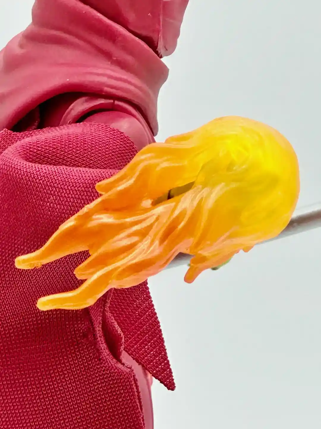The flame effect looks very realistic and can fit over her closed fist. Her magic wand is painted in a nice sliver color and it has a dark neon green (is that an oxymoron???) crystal ball at the end.