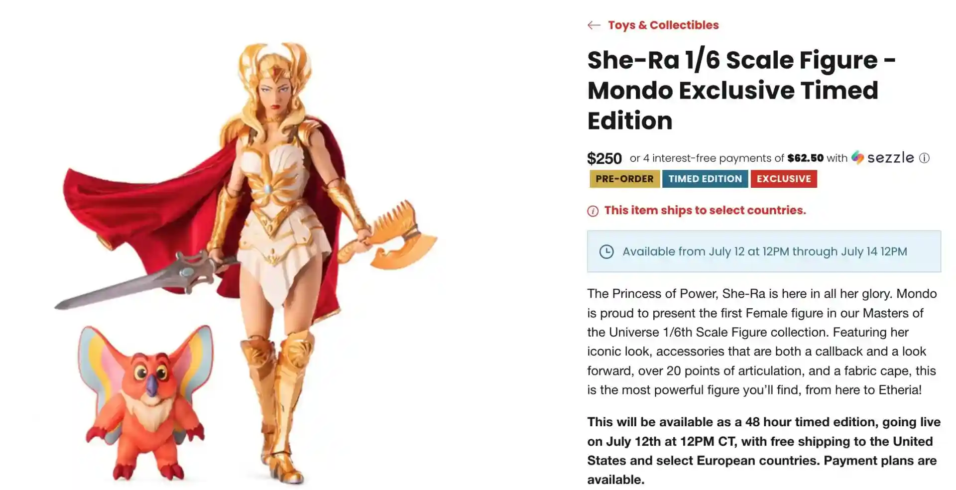 The She-Ra Mondo 48-hour timed edition preorder is going through 7/14/2022 and will end at Noon CT. If you still have not preordered this amazing figure, click on the image below and get on it!