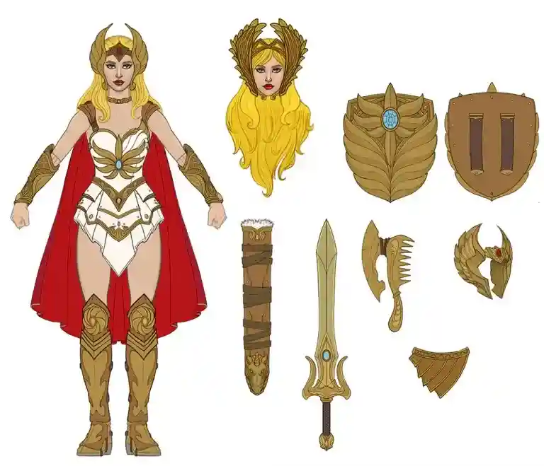 Finally arriving to our ever expanding Masters of the Universe 1/6th line is the Princess of Power herself, She-Ra! Appearing for the first time in the 1984 mini comic, “The Story of She-Ra”, She-Ra soon became a national pop culture icon and a positive symbol for female representation in cartoons, toys and comics. Being such a larger-than-life character, we here at Mondo knew the responsibility we had in representing her in all our awesome glory, and having her be the first female character in our 1/6th MOTU line seemed like the most fitting for a character of her stature. Almost an entire two years in the making, we painstakingly obsessed over every detail, making sure we were both being truthful to the original character’s look and design, while updating with a more modern spin. It all starts with concept art … and one of the best and most knowledgeable on all things Masters is Emiliano Santalucia: his take on the character was both fresh and a nod to the original design.