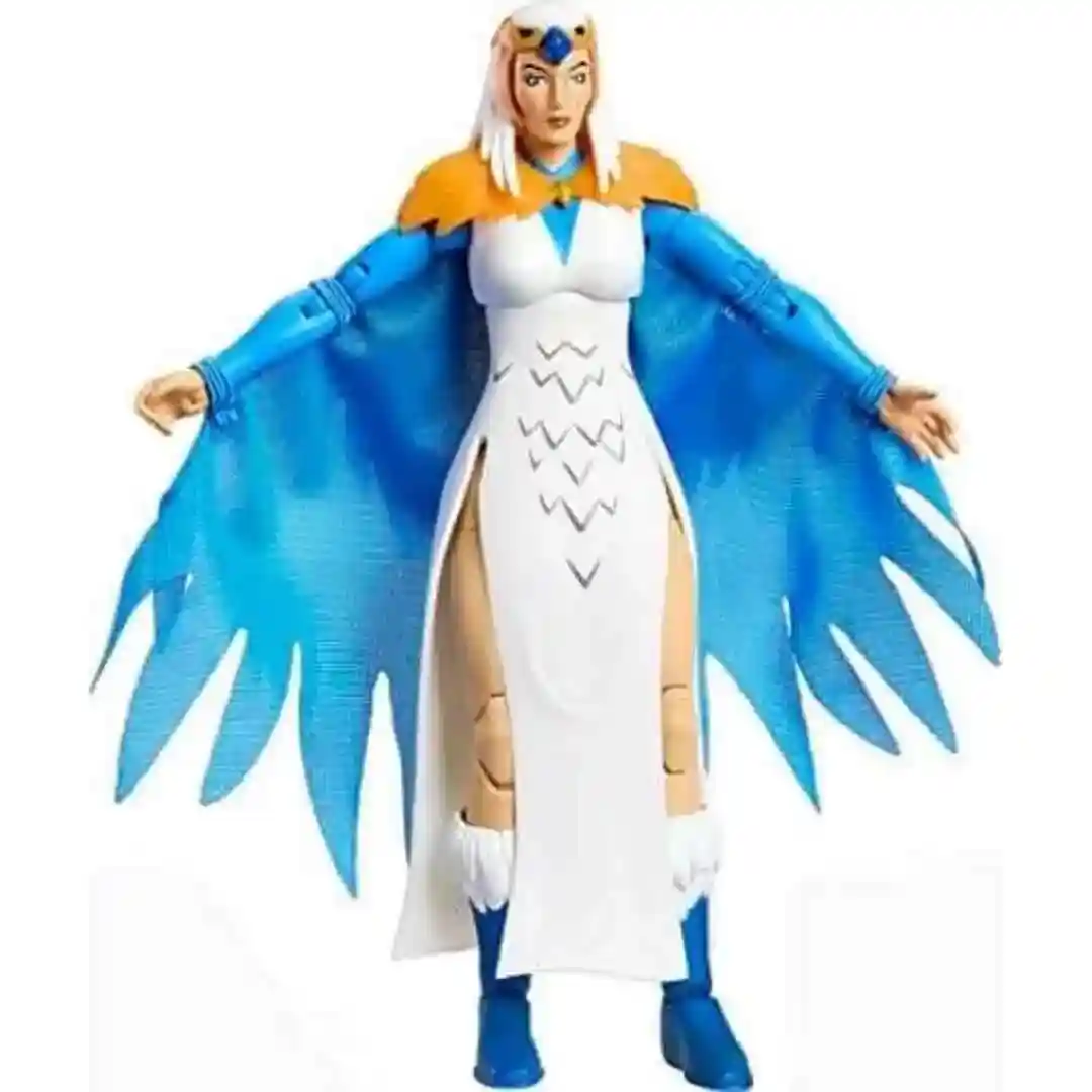Here we can see the Sorceress in all her birdly glory! They did an amazing job translating the animated version into an action figure! Also you can see that Mattel choose to homage the vintage figure by using the black outlines for the for feathers on her skirt! Her headdress is also in the classic style with the white falcon with orange accents and a blue beak.