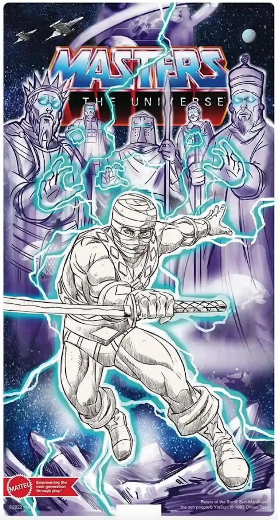 Special thanks to Charlie_5.5 on IG for the find as it appears that the Official Sun Man IG page has posted preproduction versions of the upcoming Mattel Creations Exclusive Space Sumo card art. Looks like the account mistakenly posted the card art as it is now pulled from their IG page but we were able to snag it before they took the post down. This figure was announced at San Diego Comic Con 2022 and was featured in the Mattel Booth in its own special display case along with other Rulers of the Sun figures that are coming to the Origins line but we only got to see the back of the card art.