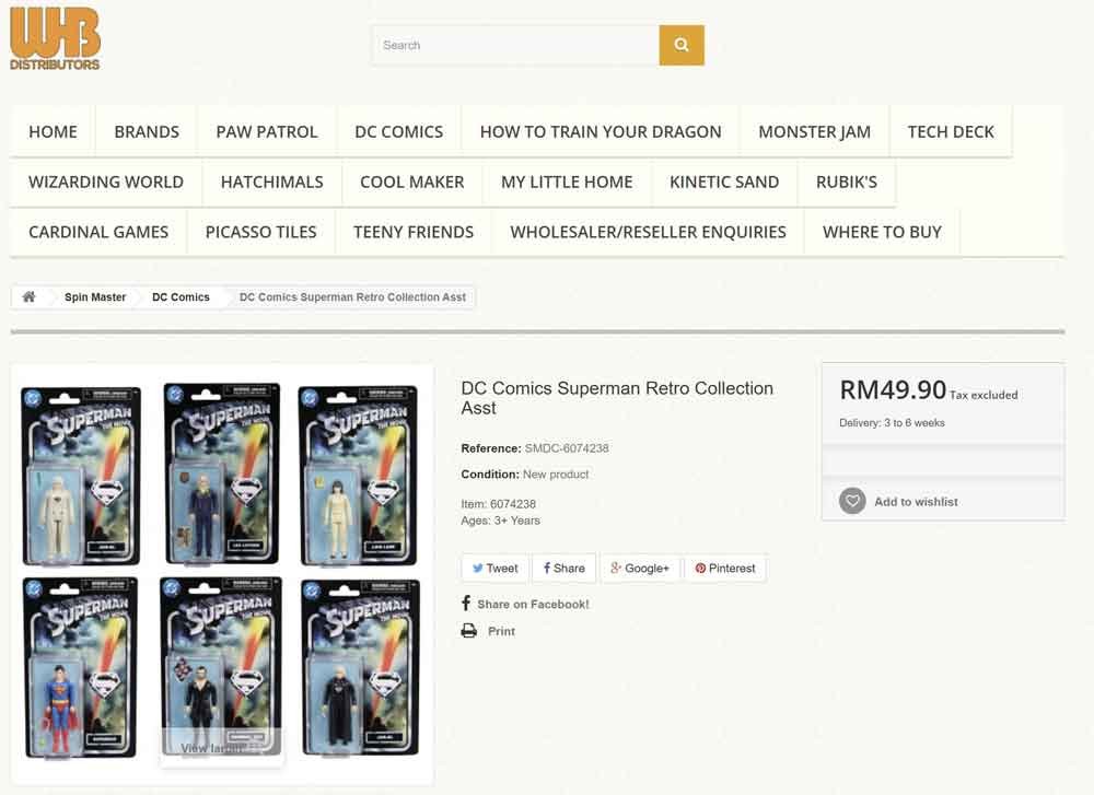 Listing for the DC Comics Superman Retro Collection Asst – WHB Malaysia is shown below with a price of RM49.90. Not sure how this translates to US dollars but they seem to be inexpensive figures.