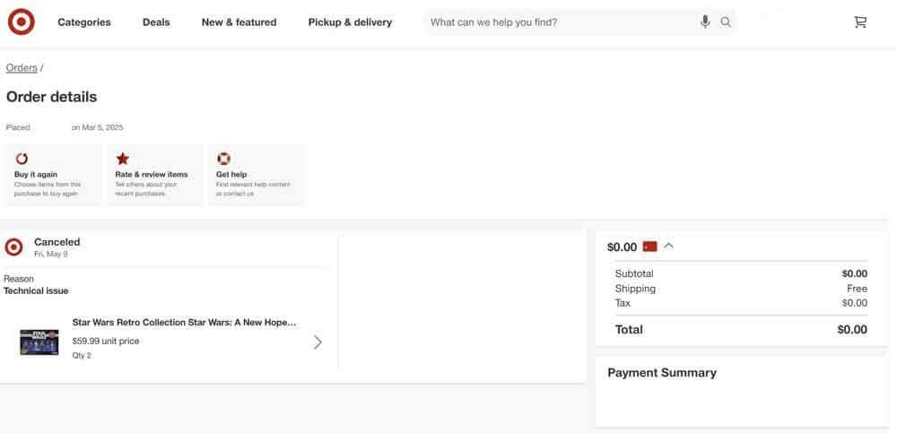 Back in March, Retro Collection Star Wars fans rejoiced as the latest A New Hope #3 Multipack went up for preorder at Target.com. This amazing new set contained 5 never before made figures by Kenner (Hasbro) and our first Cantina Alien in Retro Collection form. The set sold out instantaneously and for those collectors lucky enough to have scored a set when preorders opened, they celebrated. Well, fast forward less than 2 months and the delivery date was delayed several times by Target, then they sent out the dreaded “You order has been canceled due to vendor issues” email. Now this was very upsetting to collectors, but given the current state of the world, not too surprising. Hasbro has also temporarily suspended preorders on Hasbro Pulse on all their preorder products as well. So the maddening part of this story is that this set that was canceled on all who preordered it has been found in store! Thanks to Corey Yarnel for posting these images of the set he found in store. There is no explanation as to why if the set is still available then how come Target did not ship them out to those of us who preordered it?! Has the Star Wars Retro Collection A New Hope #3 Multipack Canceled or Not?! We explore that now.