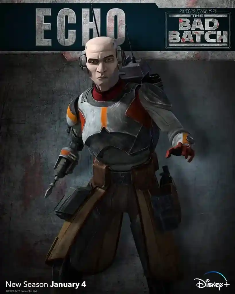 Former ARC Trooper Echo joined the Bad Batch towards the end of the Clone Wars after his rescue from the Techno Union. During his years as a soldier in the Grand Army of the Republic, Echo proved to be among the bravest clones, integral in the defense of Rishi Station and Tipoca City. As part of Clone Force 99, Echo’s knowledge of proper military tactics and strategy provides valuable insight, while his socket-arm and cybernetic implants give him the unique ability to interact with computer systems.