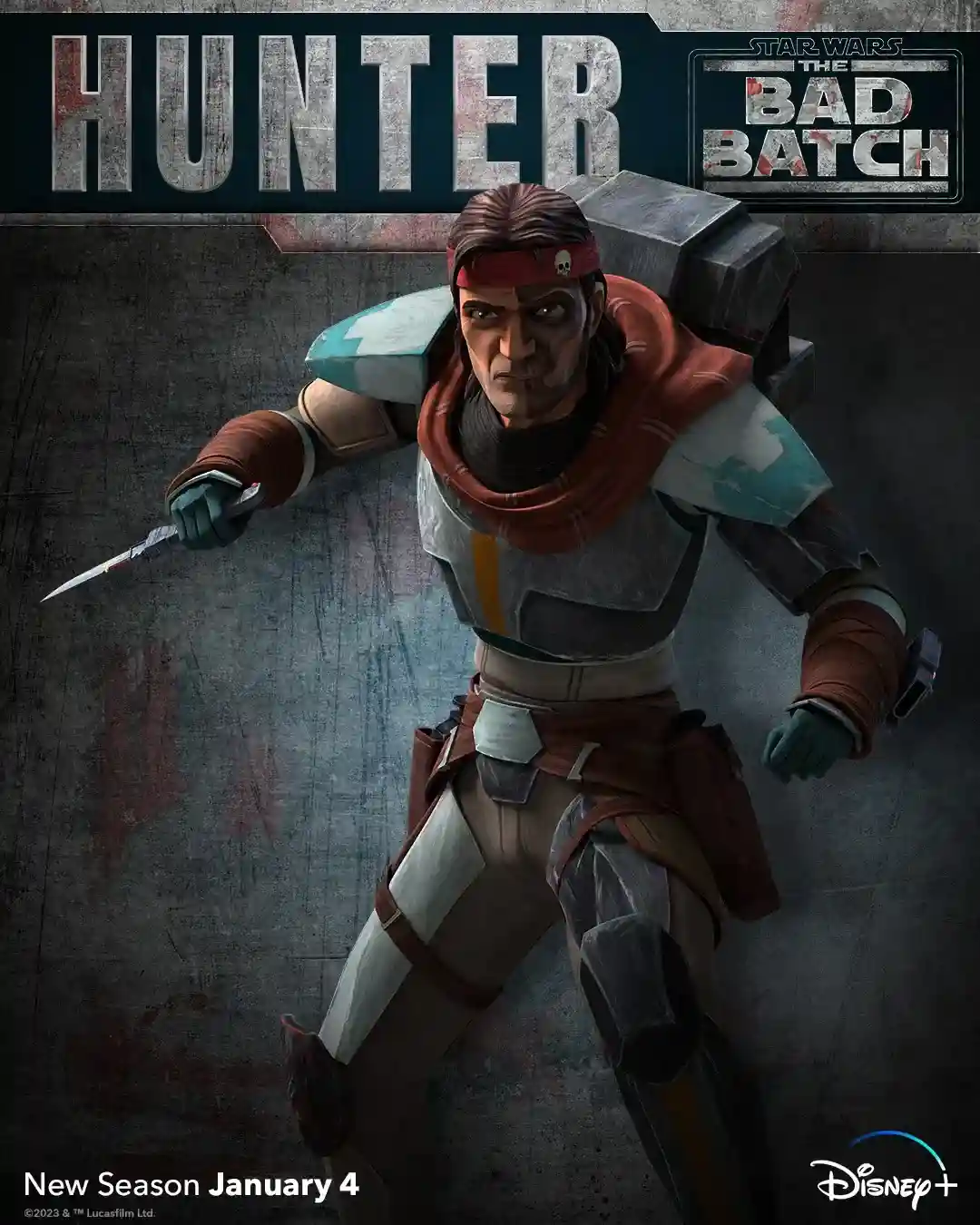 The Bad Batch, technically known as Clone Force 99, is the result of Kaminoan experiments to create a specialist unit of clone commandos. Hunter, their leader, is a strong and stoic soldier. Hunter has extraordinarily keen senses that give him an edge when tracking down his targets.