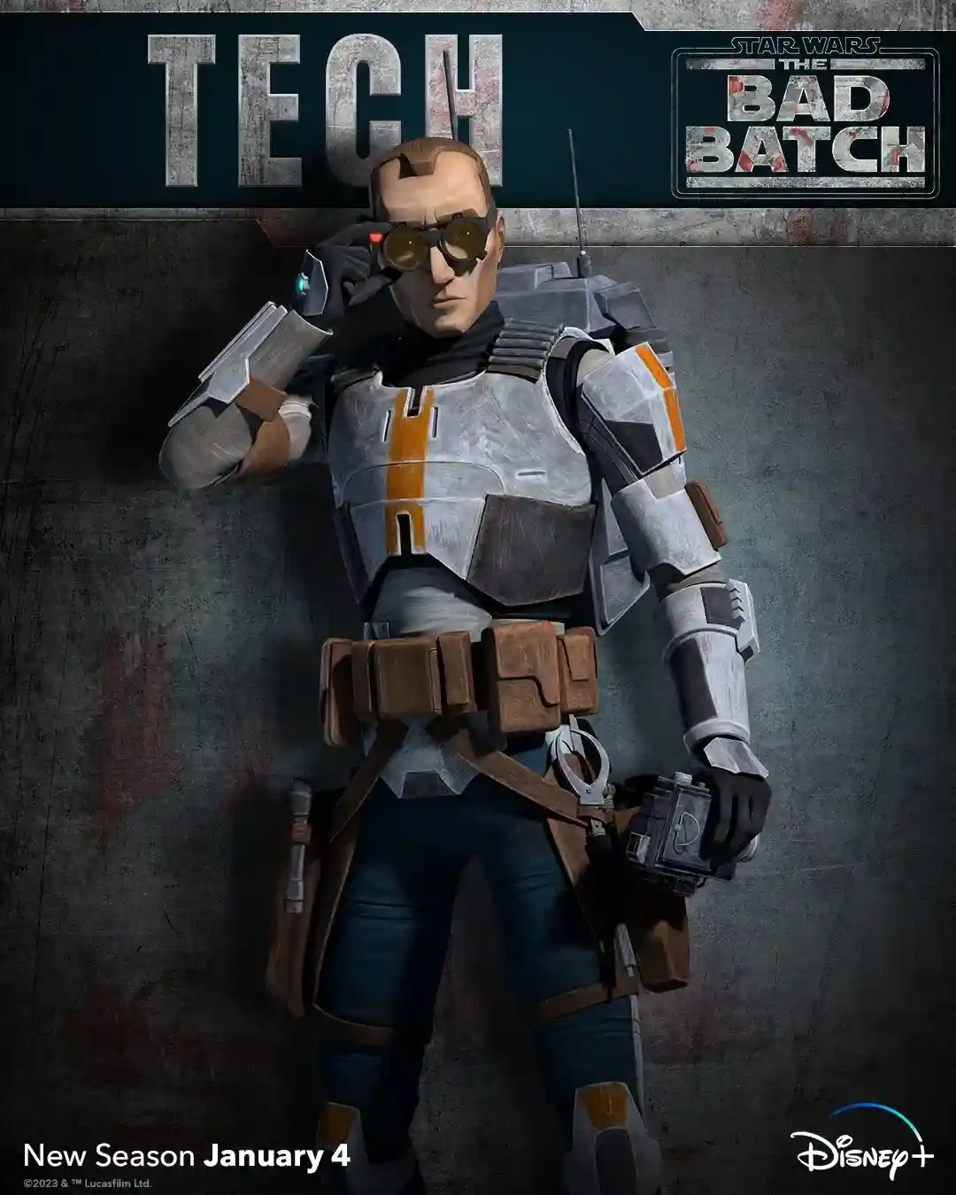In the unusual group of specialist clone commandos called Clone Force 99 (or the Bad Batch), Tech is the computer and weapons specialist and easily the most talkative of the group. With his data analysis skills, he can puzzle through technical issues at speeds even faster than some droids.