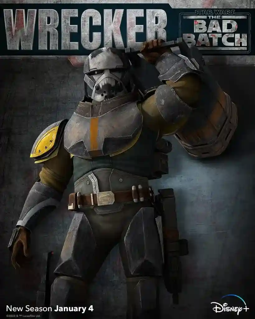 The boisterous bruiser of Clone Force 99, a group of elite Republic soldiers known as the Bad Batch, Wrecker is a tower of a soldier, with powerful muscles that make him far stronger than the average clone. He earns his nickname well, as he has a flair for bashing droids and is the resident demolitions expert — a job he performs with much enthusiasm.