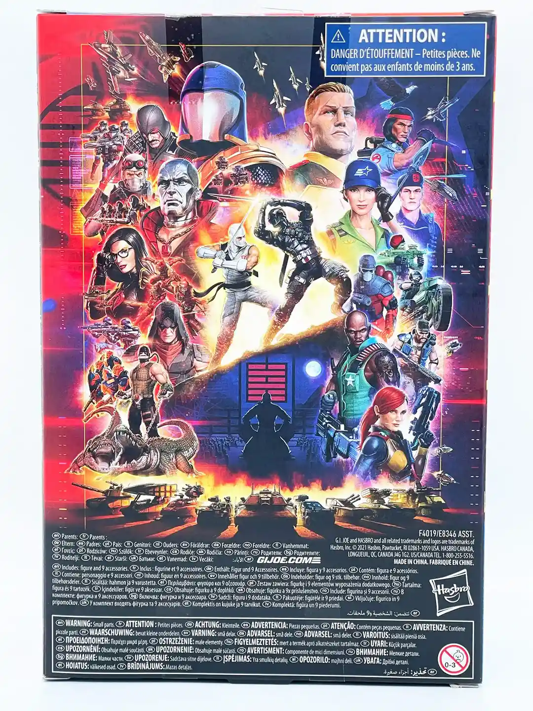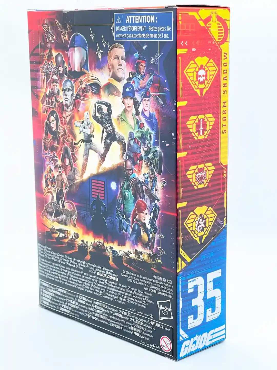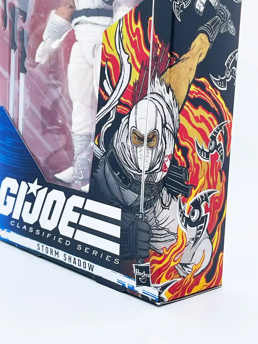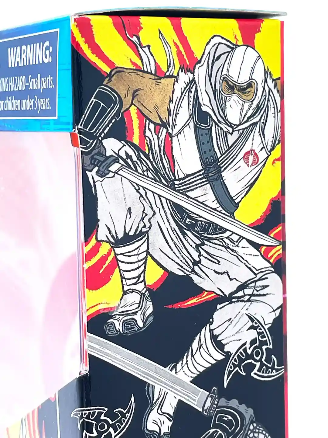 Joining some of the best artists in comics and graphic design in Hasbro’s artist partnership program, Yuko Shimizu adds a unique style to the Storm Shadow package where you can see him in his classic white uniform in various action poses. The yellow and red flame background sets the illustration of Storm Shadow off nicely given his gee is all white!