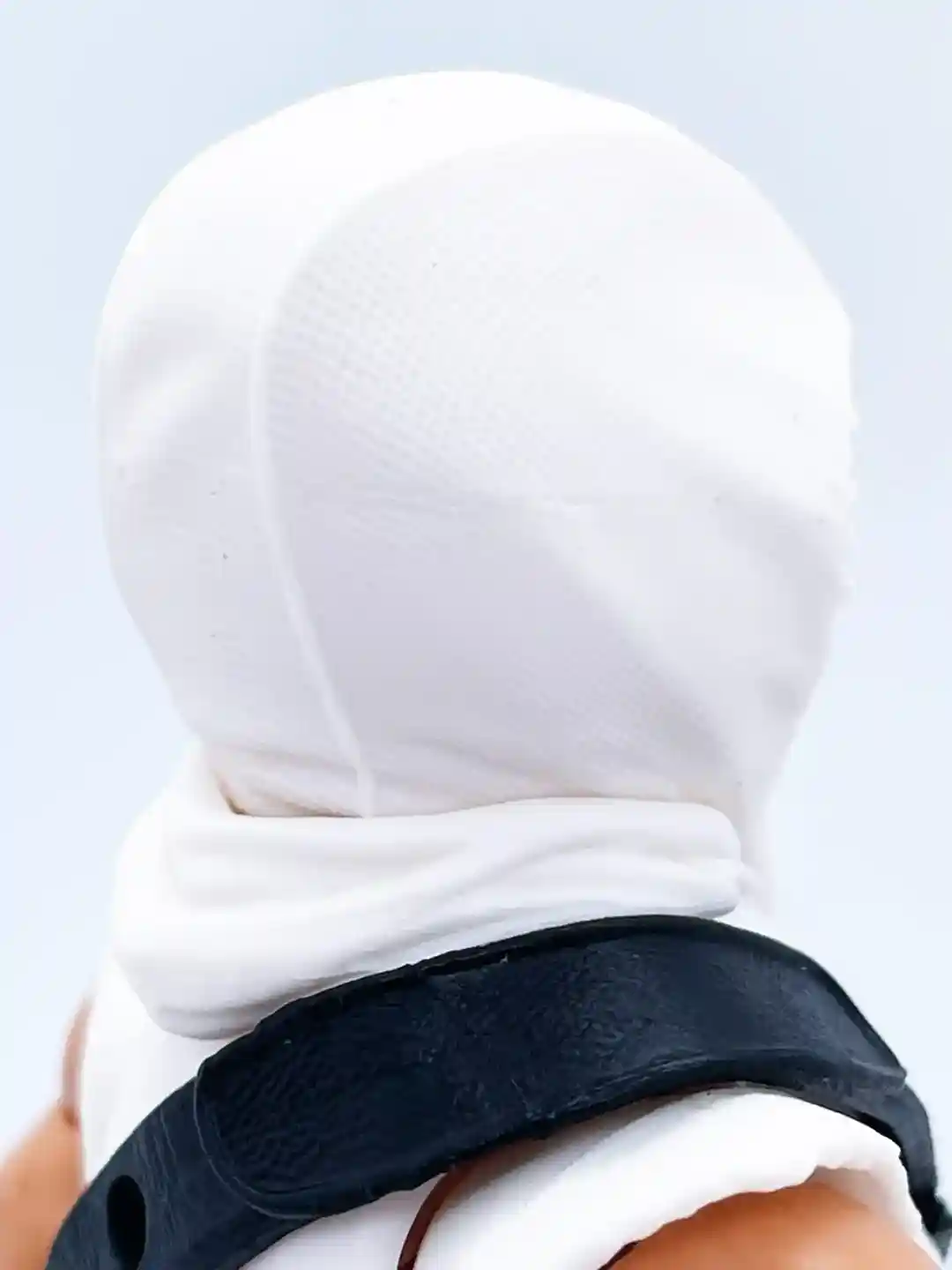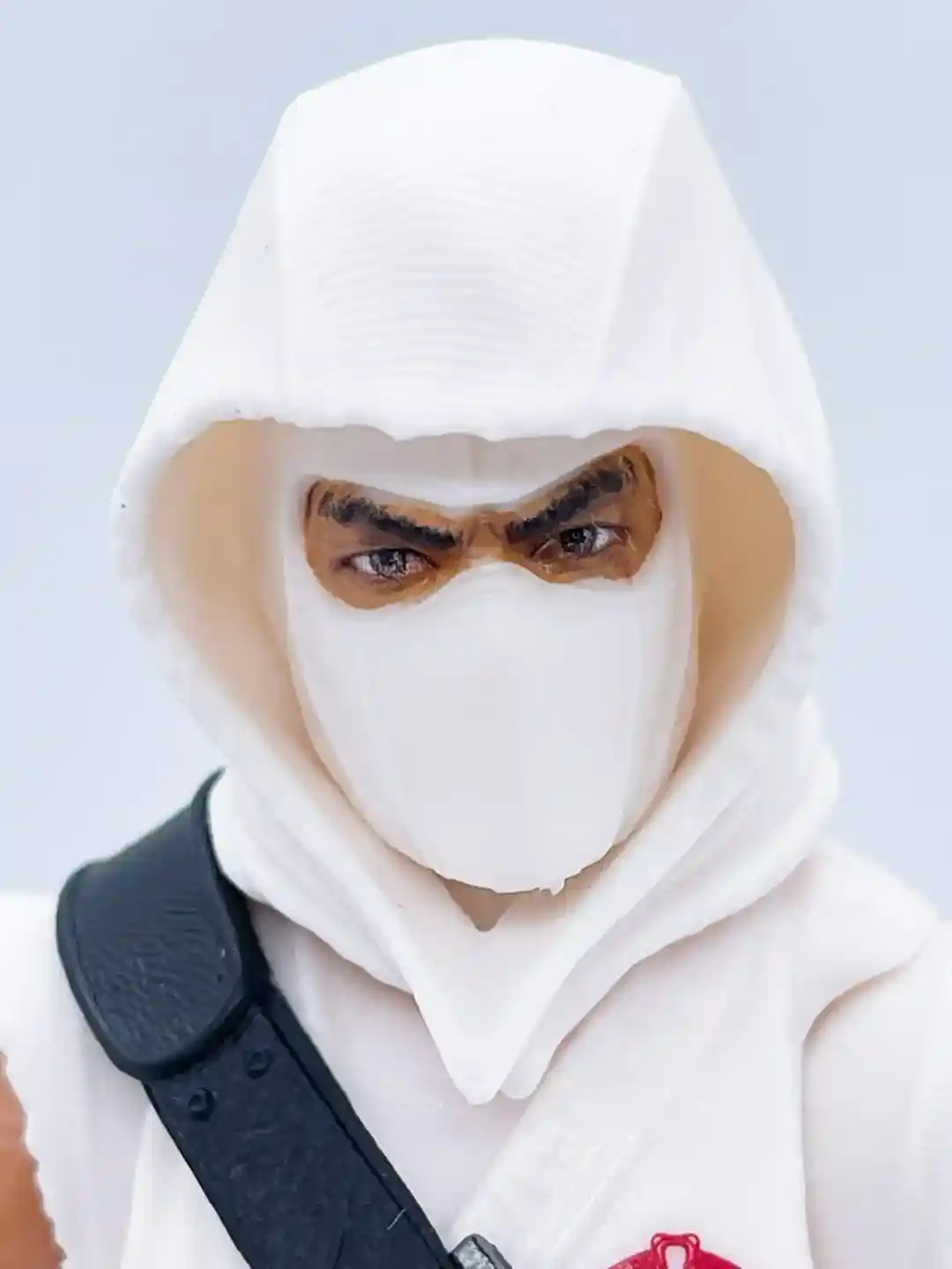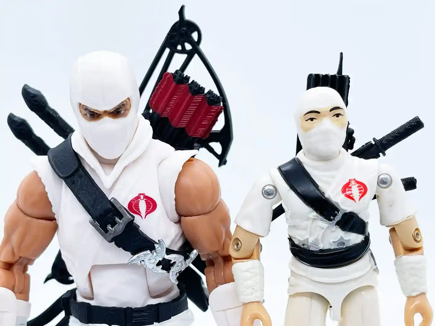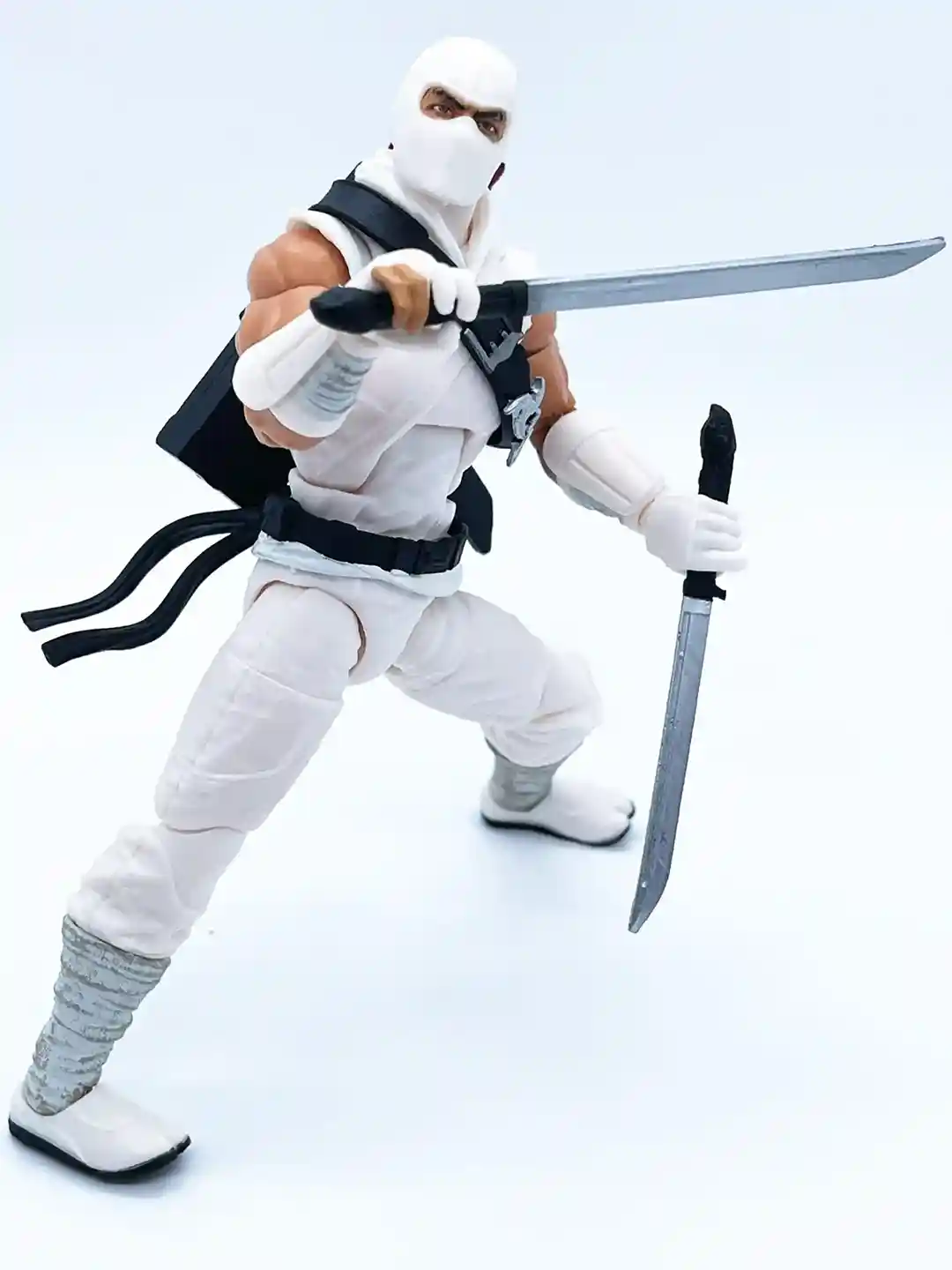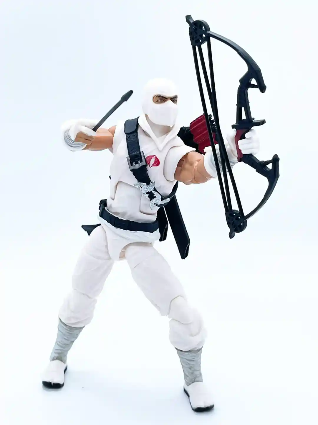 The classic red cobra symbol stands out against his bright white gee and you can see his classic black strap across his chest that has a some very nice leather detailing to it! Setting off the strap are two throwing stars and a silver buckle.