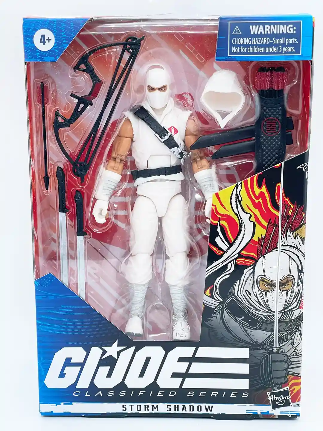 Storm Shadow comes in the soon to be discontinued GI Joe Classified Series window display box where you can get a great view of the figure and the accessory pack out!