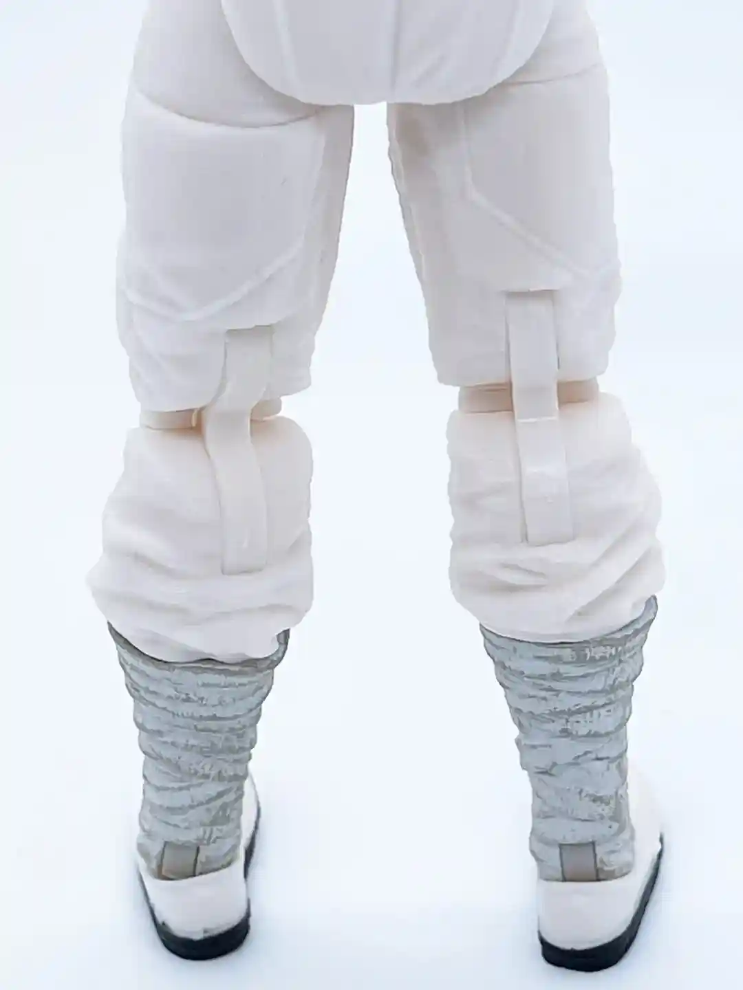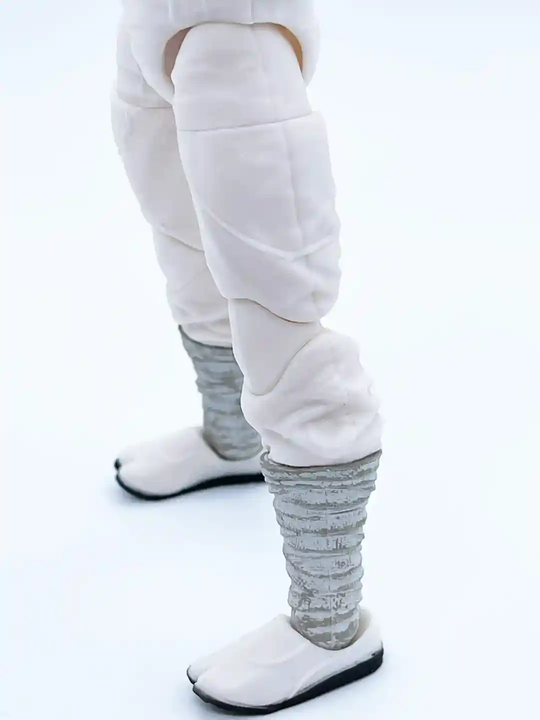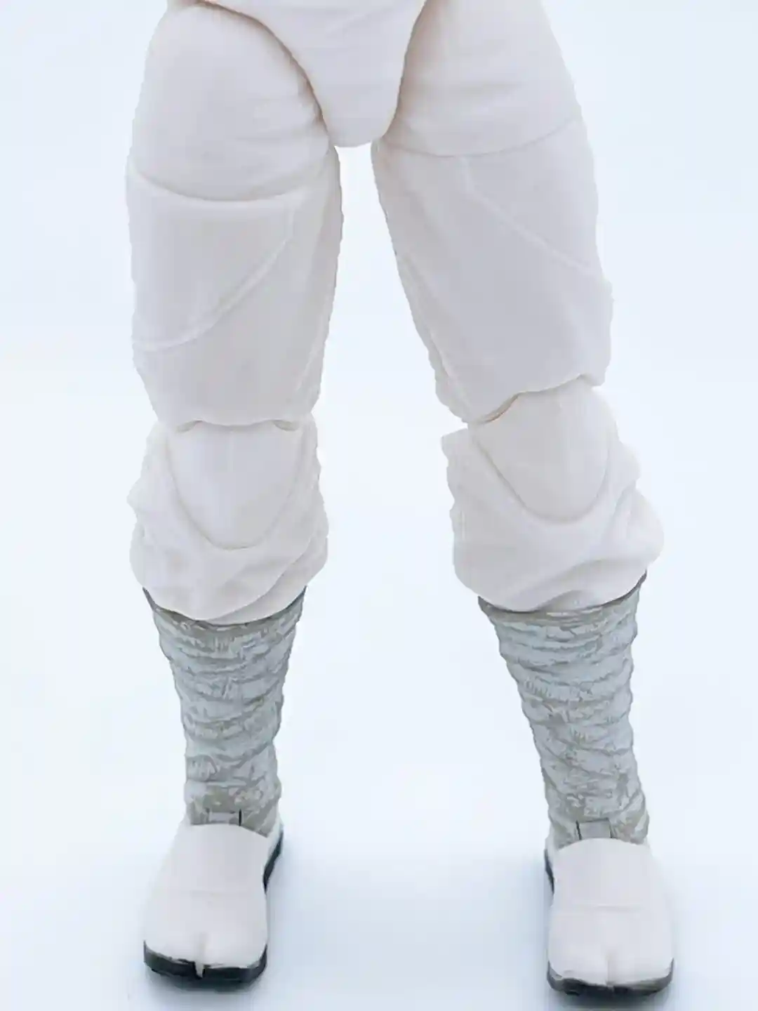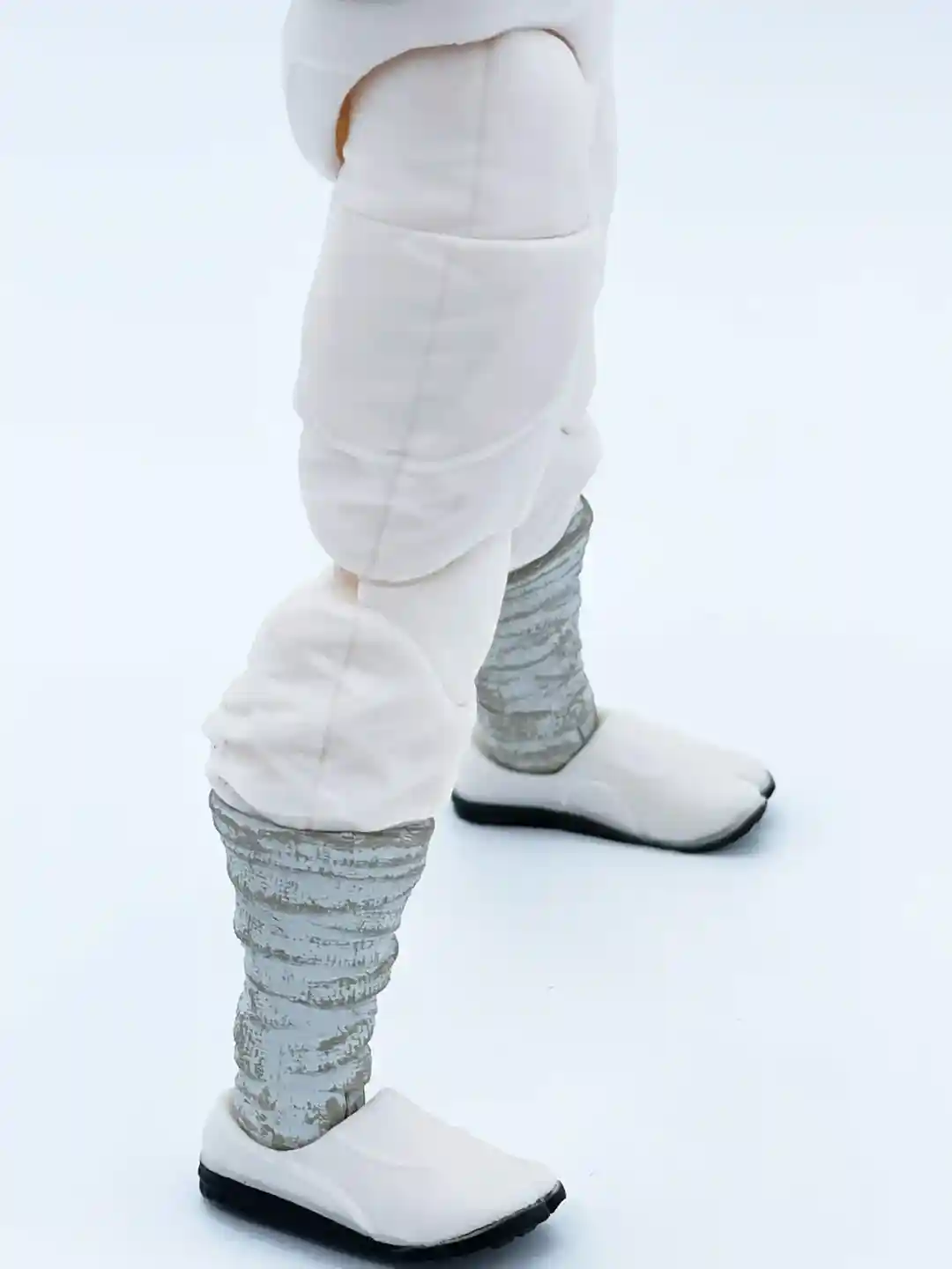 The pant design on his legs appears to have a flowing clothing sculpt and they did a great job making it look like pants are tucked into his boots. The same gray and blue paint from his gauntlets are repeated on his boots, which ties the two together nicely!