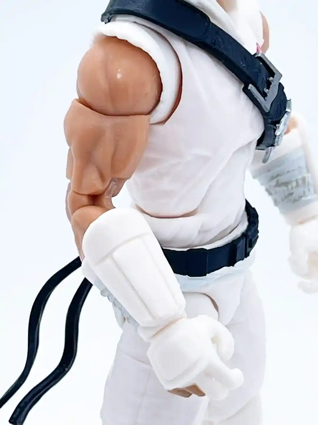 Storm Shadow’s right arm features a gauntlet with his pinky and ring fingers exposed in his hand sculpt. On the inside of the gauntlet it features a light blue and gray paint app, which adds a splash of much needed color. His shirt under his gee features a scalloped pattern over his shoulder to mimic real clothing.