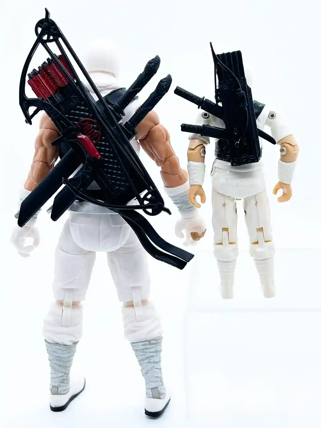 The throwing stars that are sculpted on to his vintage figure have been moved to the strap that goes across his chest in the Classified Series version. The weapons pack out for both figures is a very similar although the the Classified Series version does not come with a set of nunchakus. You can also see that the belt tassel has been moved to the rear (pun intended) of the figure whereas the vintage figure has his tassel sculpted on the left side of his hip.