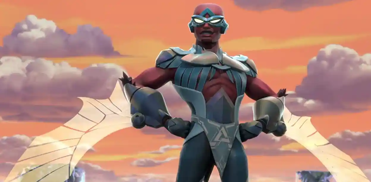 In the animated series, Stratos is clad in a light blue suit with wings that attach to his forearm gauntlets. He has the ability to retract his wings to hide them when he is not in flight but now that we look closer, he takes on a very MCU Falcon (Sam Wilson) appearance with his goggles, wing design, and flight suit.