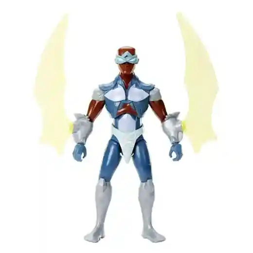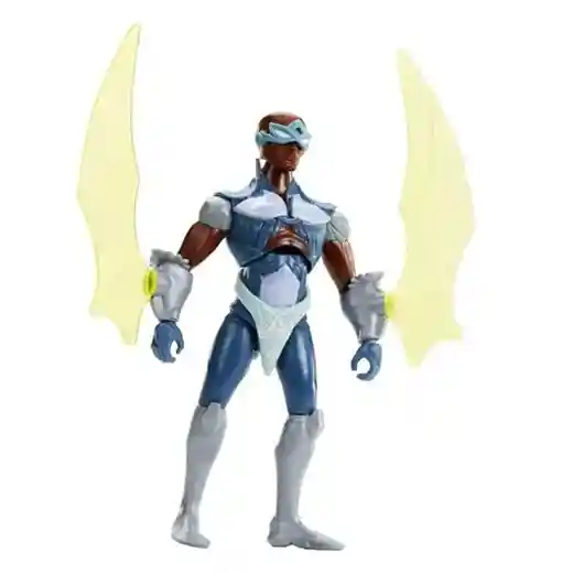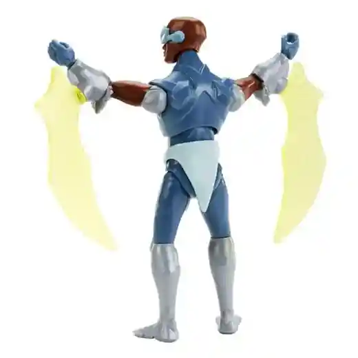 The new Stratos animated design looks nothing like the Filmation cartoon, which is par for the course with the He-Man animated series. Looking for like a bird of a different race, the Stratos from the 80’s definilty had a distinct look as he was from a race of bird people from Avion. Now, the CGI Stratos is also King of Avion but he is a human vs. a bird’type creature. The wings attached to the wrists, the goggles, and the exposed chest are where the similarities end but enough of that, let’s take a closer look at the figure itself!