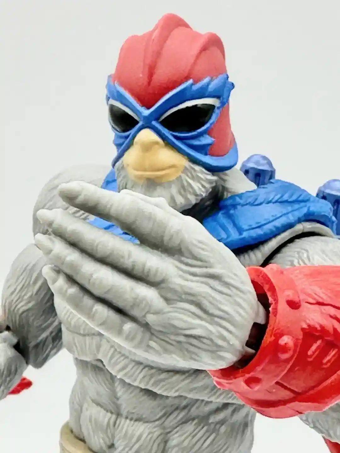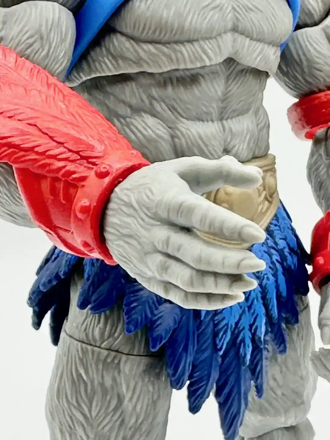 Stratos’s wing design was perhaps the most surprising aspect of the figure! Instead of a single wing, they created two separate peices that kook together so you can display him in his full wing glory OR, if you are so inclined, remove the upper wing and display him with a shortened wing. It’s like Burger King…have it your way baby! The upper wing has a black wash to it while the lower wing does not.