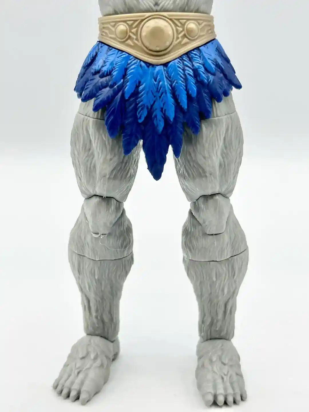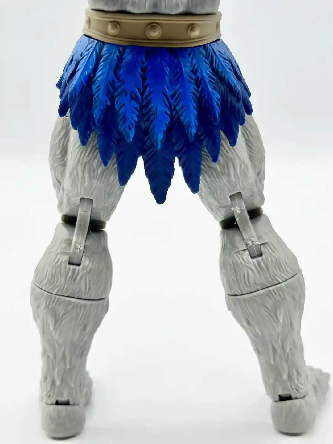 Instead of a furry loin cloth, Stratos has a feathered loin cloth that is apropos for the figure. It has a layered look to it as the features coming from his belt are a lighter color. After years of Stratos wearing loafers, Mattel finally gave him proper feet with toes so we are excited to see this evolution.