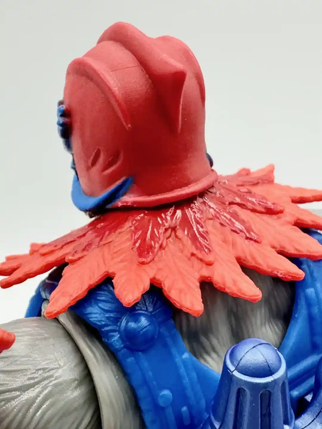 In true New Eternia style, Stratos comes with his red pack that his mask plugs into and although we don’t know the origins of the mask, this might have been a creative liberty taken by the Mattel team to make use of the New Eternia concept.