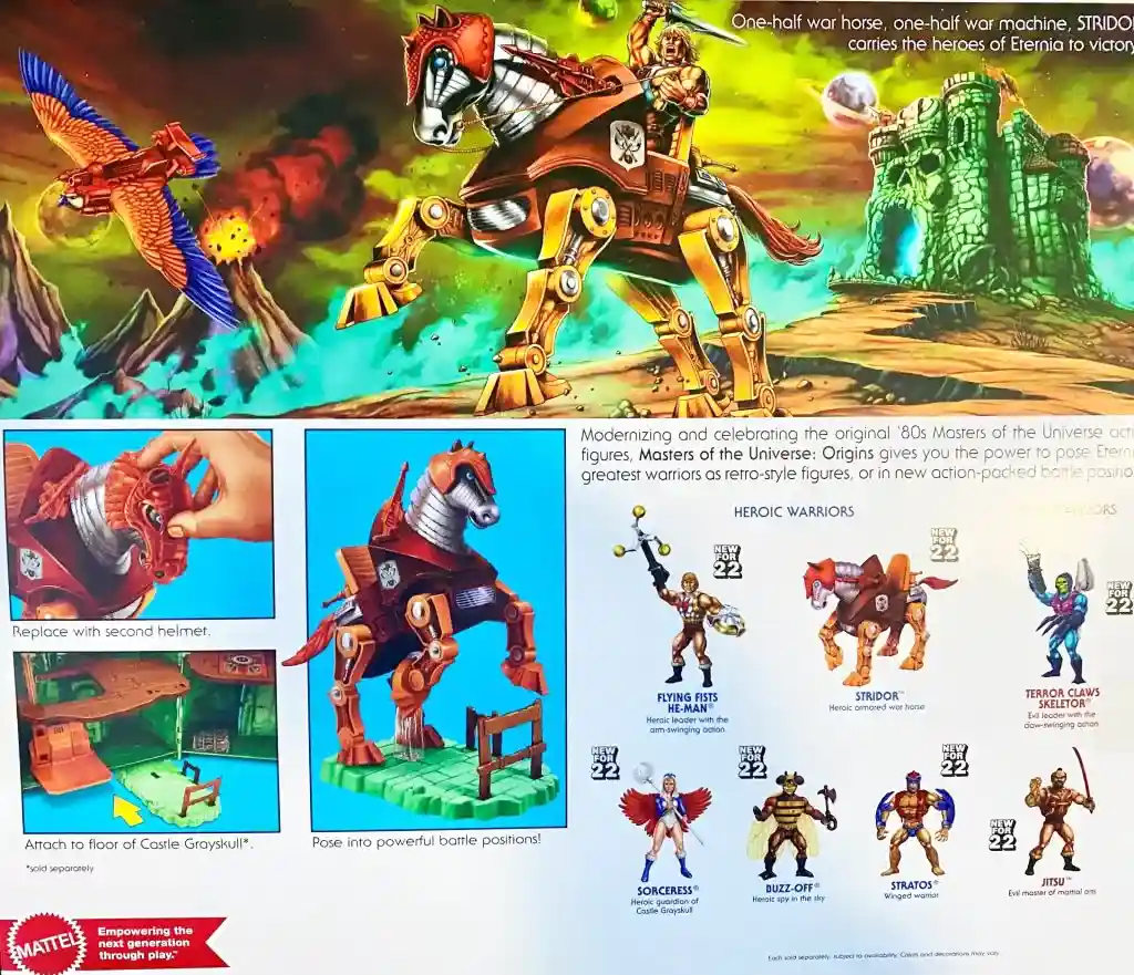 This Masters of the Universe Stridor review is a comprehensive comparison of the original vs. Origins war horse! Details and photo analysis.