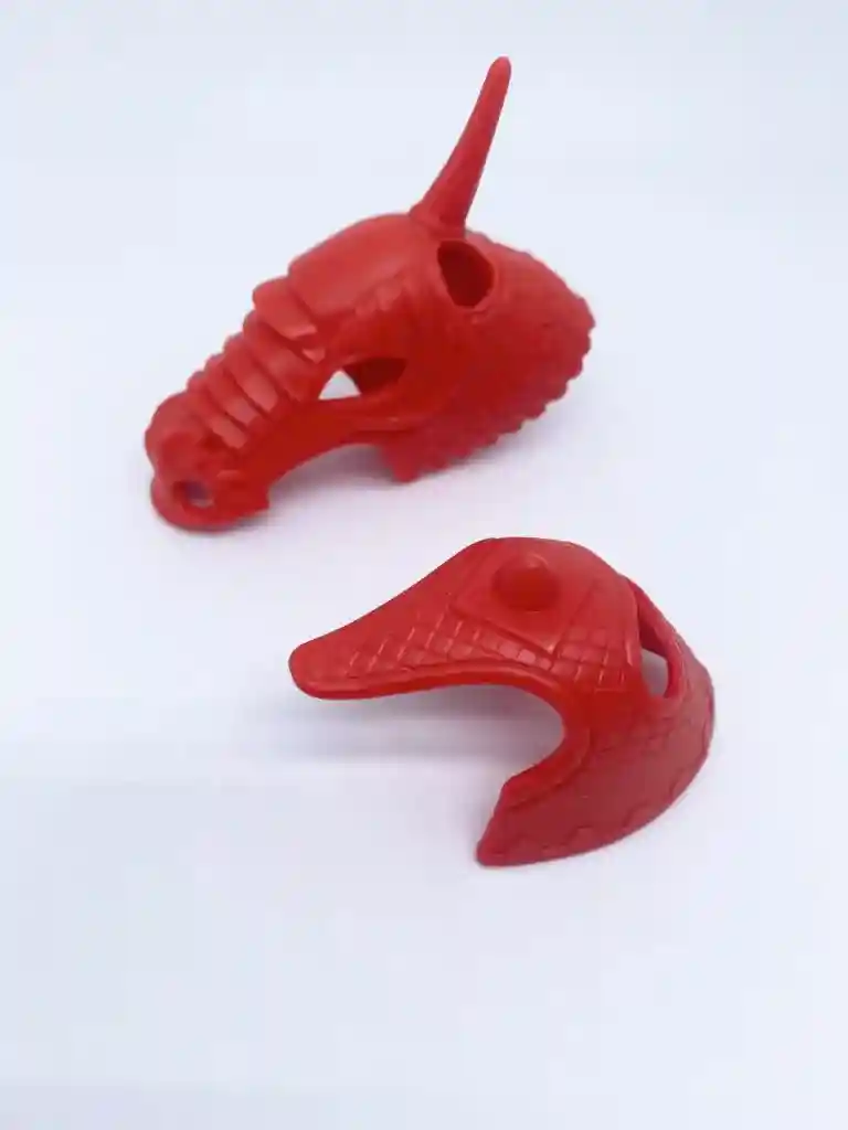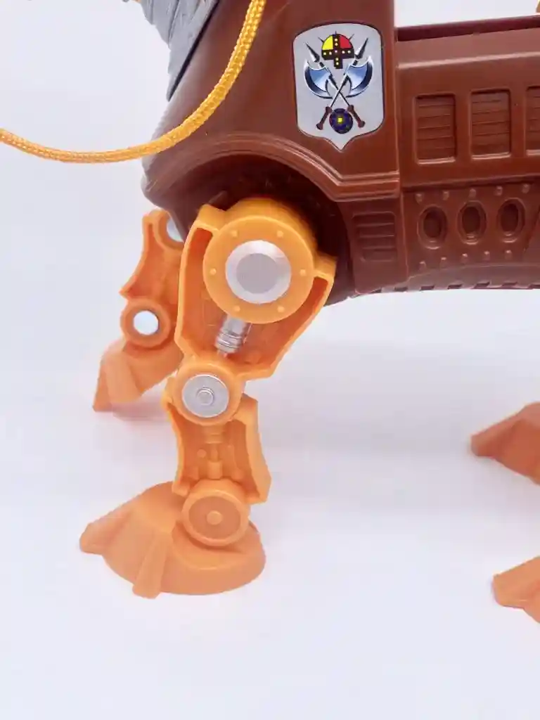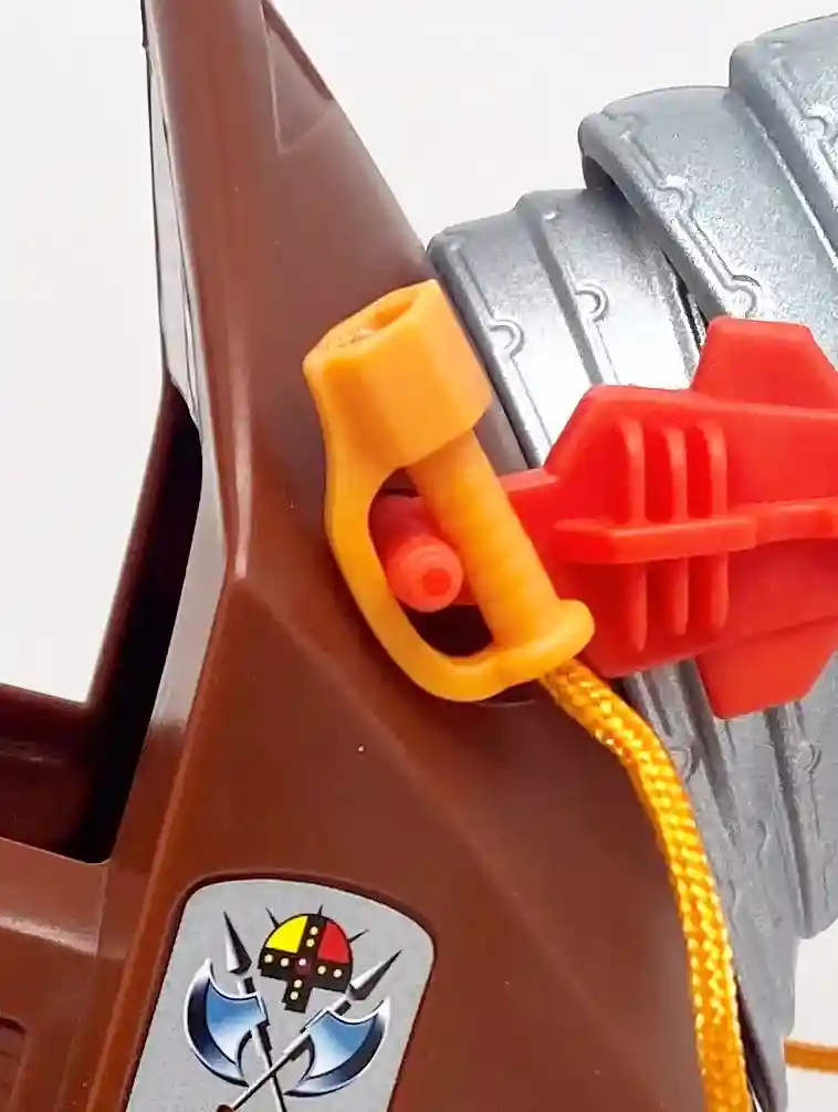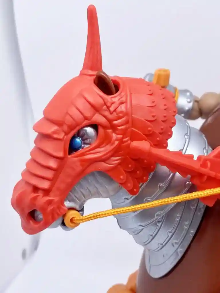 Roped Bridle with handles: Stridor comes with a set of bridles included, that snaps into his articulated mouth! Your rider can hold onto the handles or store on the pegs on the sides of the cannons as shown above.