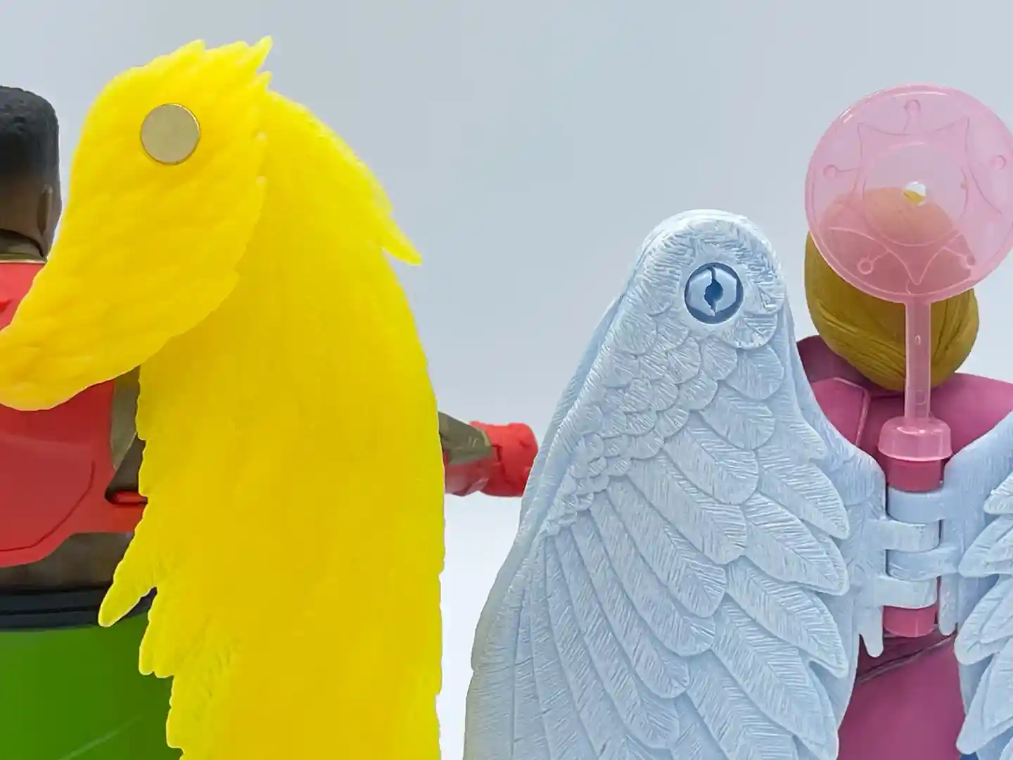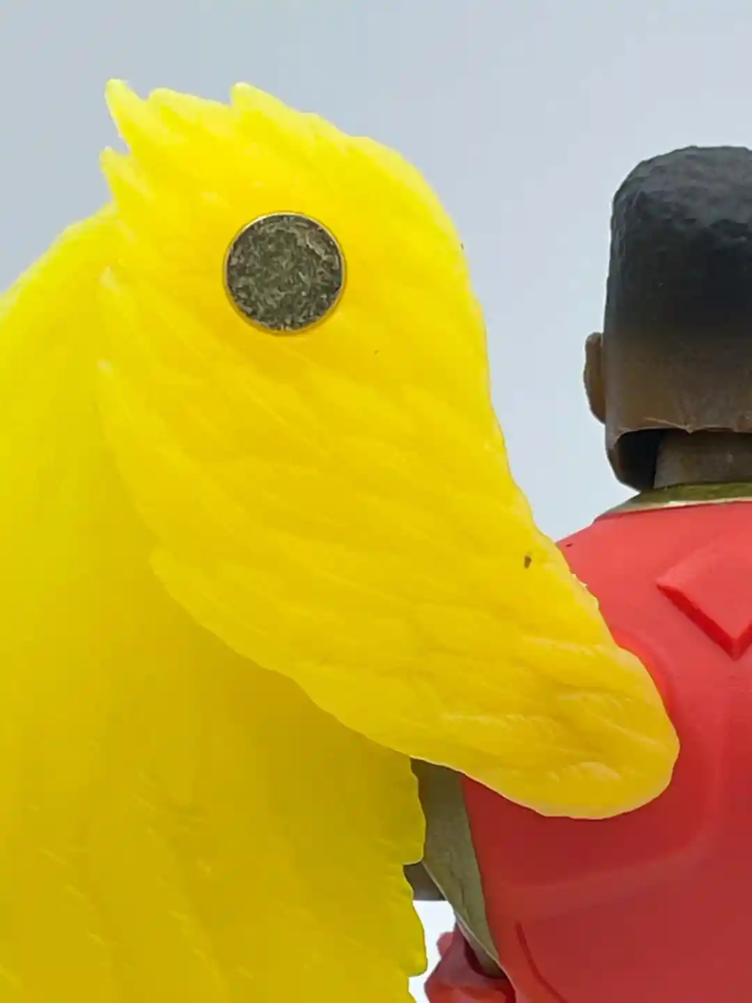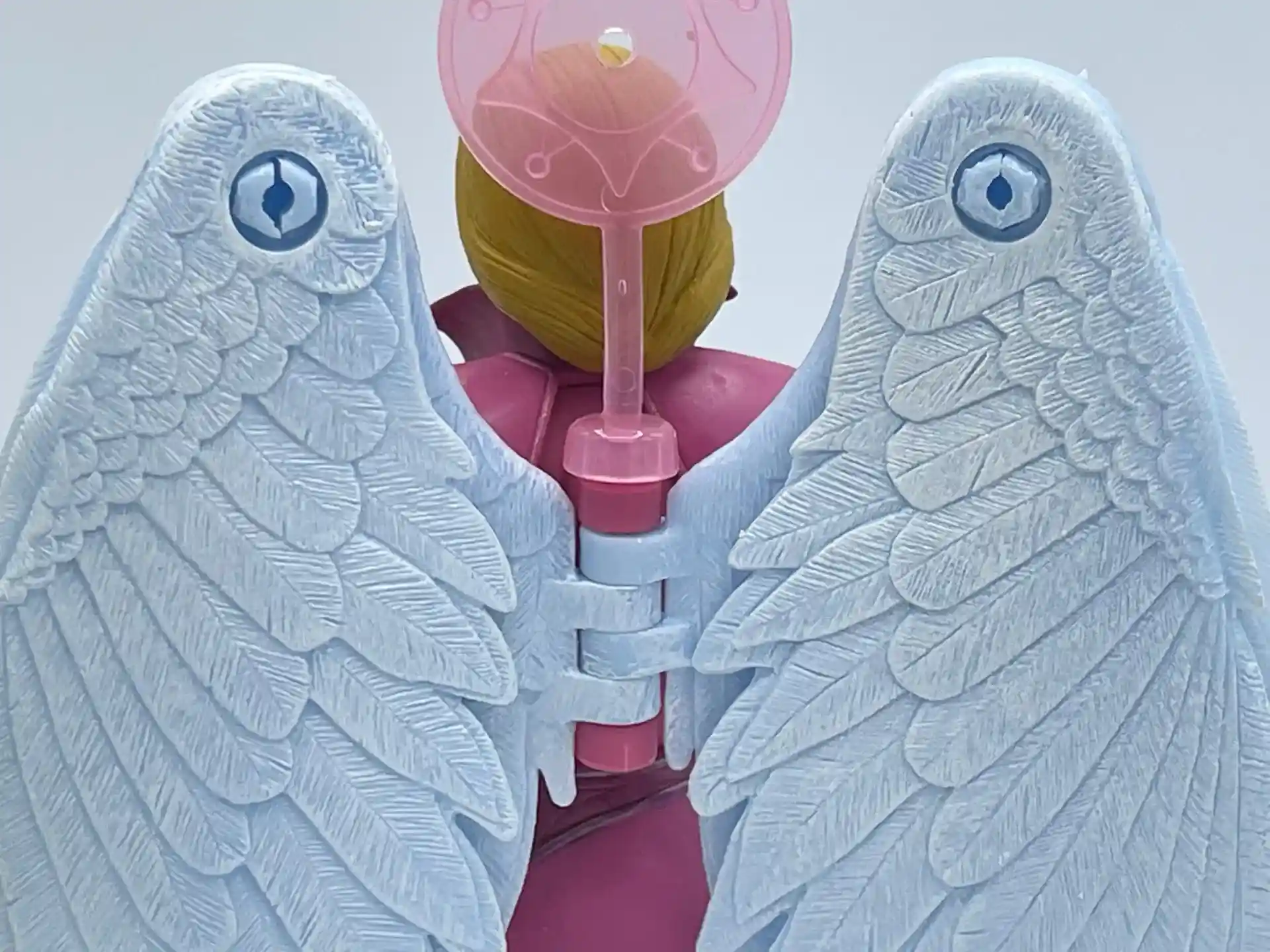 The wing design is fantastic as they feature a realistic sculpt cast in a translucent yellow plastic. The wing span is pretty massive so make room on your shelf if you wanting to spread his wings as far as they can go! They are two separate pieces connected by a silver pin for possibility. You can remove the wings if you choose to pose him without them so that is a great option if you want to get back to his classic look.