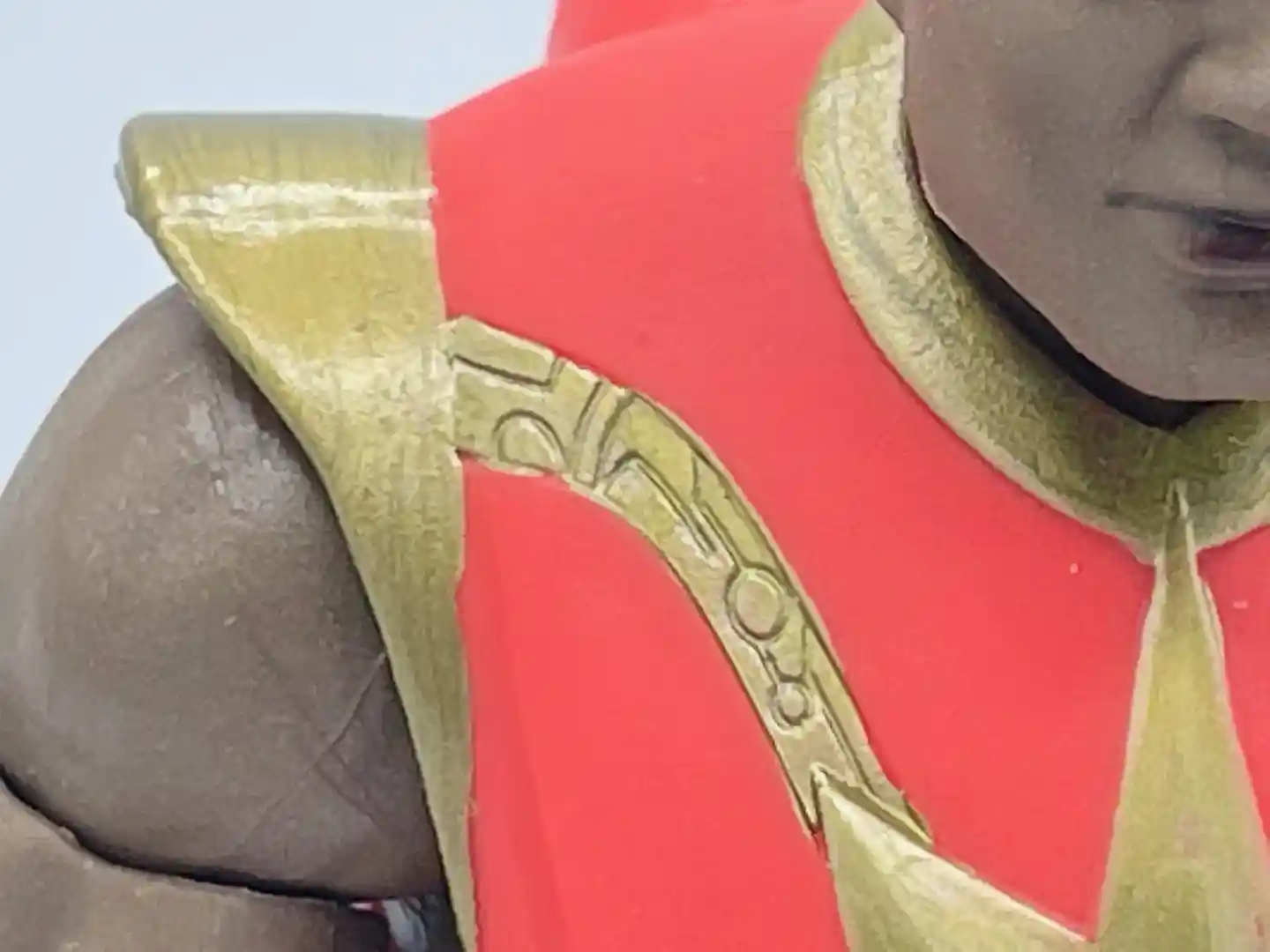 The bracers are very nicely done and give a nod to the vintage Sun-Man with the diamond design, which is a sculpted piece and sits atop the frame of the gold bracer with some detail technical detail that makes the design feel like it was meant to harness the power of the sun.