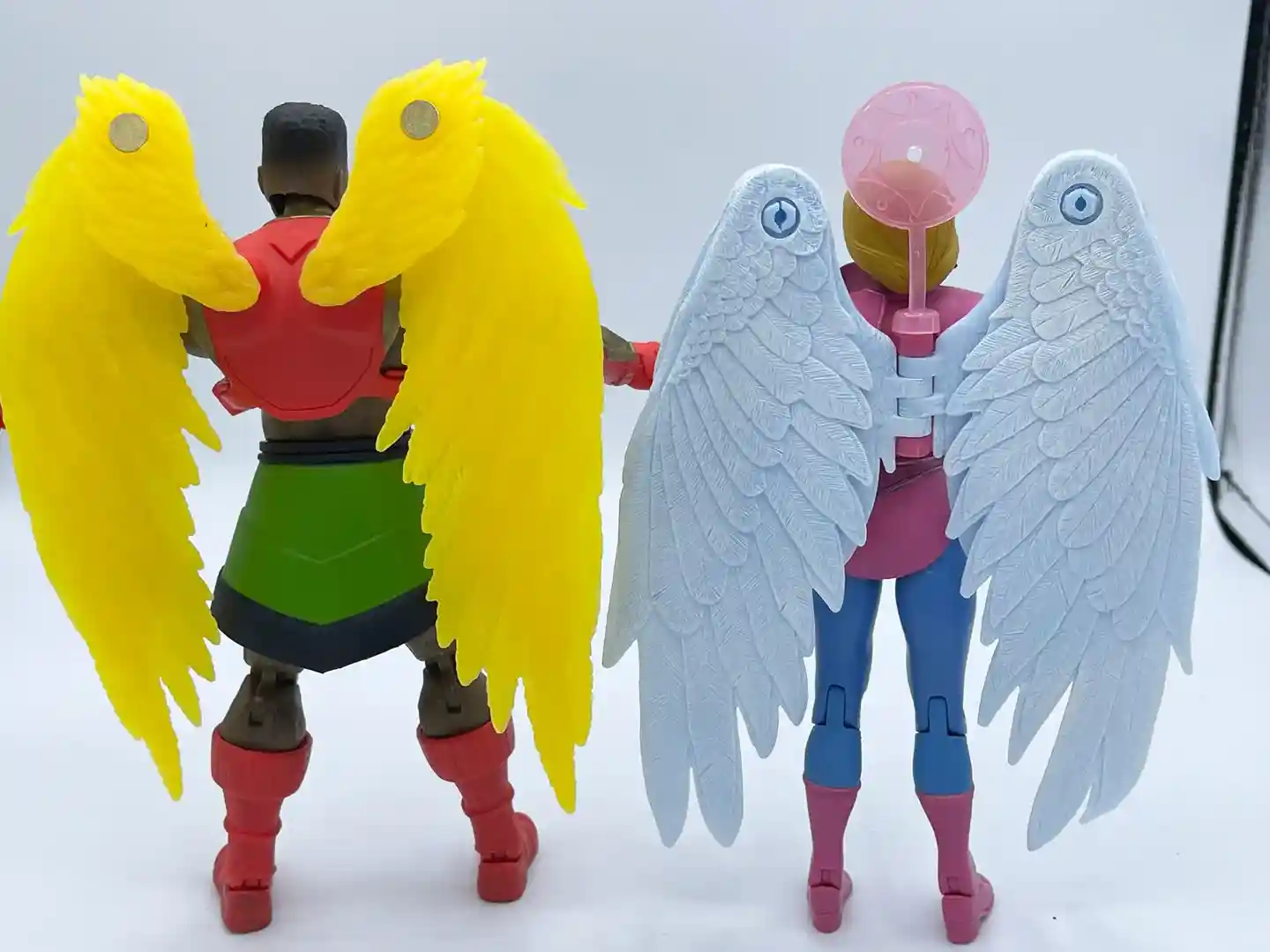 Mattel has made some winged figures for their Masters of the Universe Classics line so we wanted to see how the compared to Queen Angella from the Princess of Power line. As you can see, the wing sculpt and design is new and it is great that they did not reuse parts from the Classics line. The wing design on Queen Angella was reused on other figures in the Classics line, like Vultak and the DC Classics Hawk Man.