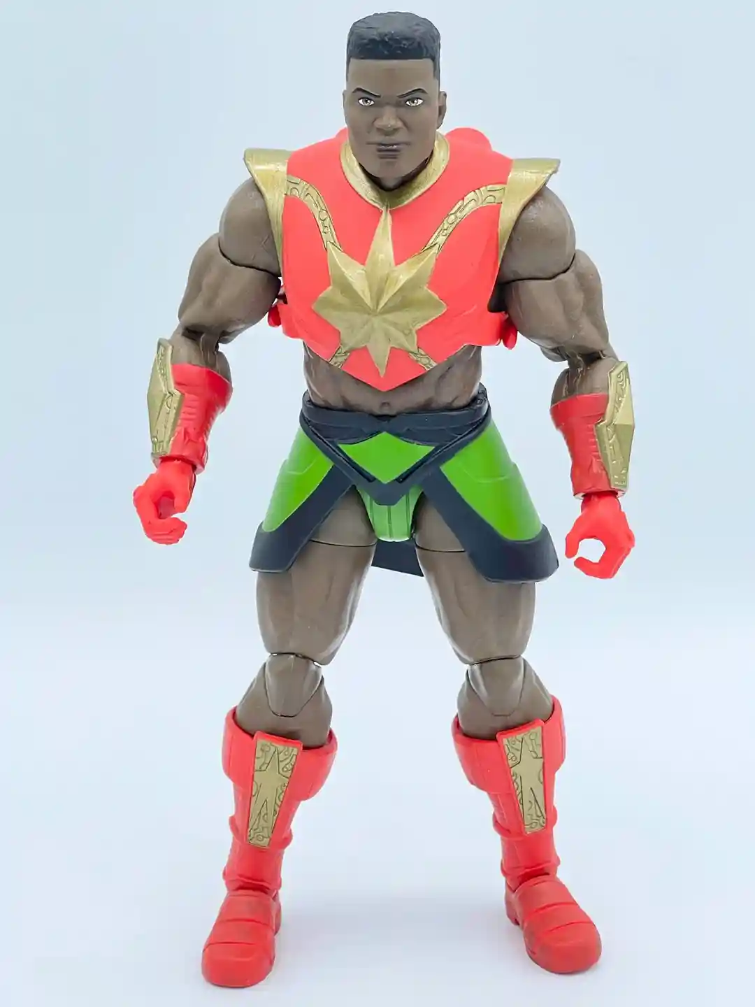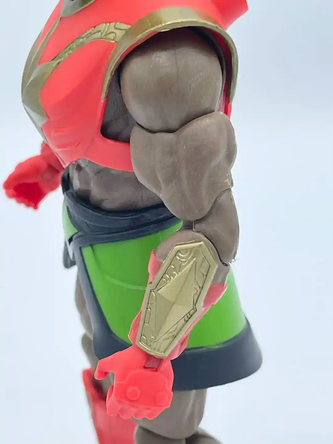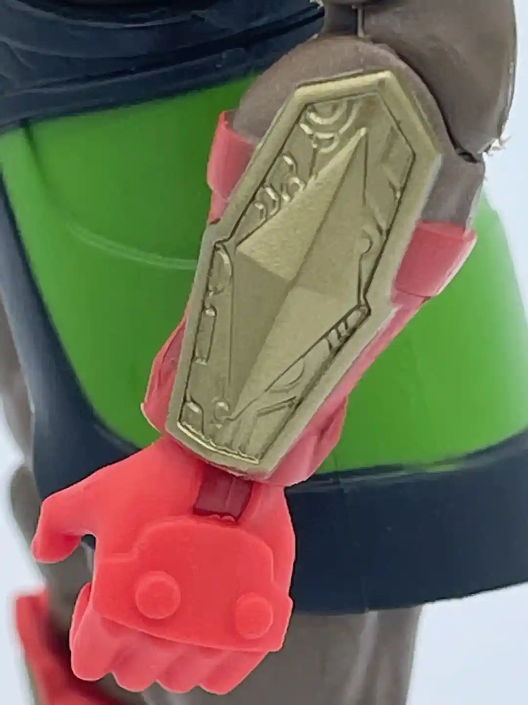 The figure uses the stock Masterverse arm buck but the eye candy are in those forearm bracers. Also, the gold around his shoulder armor looks amazing and is a nice touch that ties all the gold together.