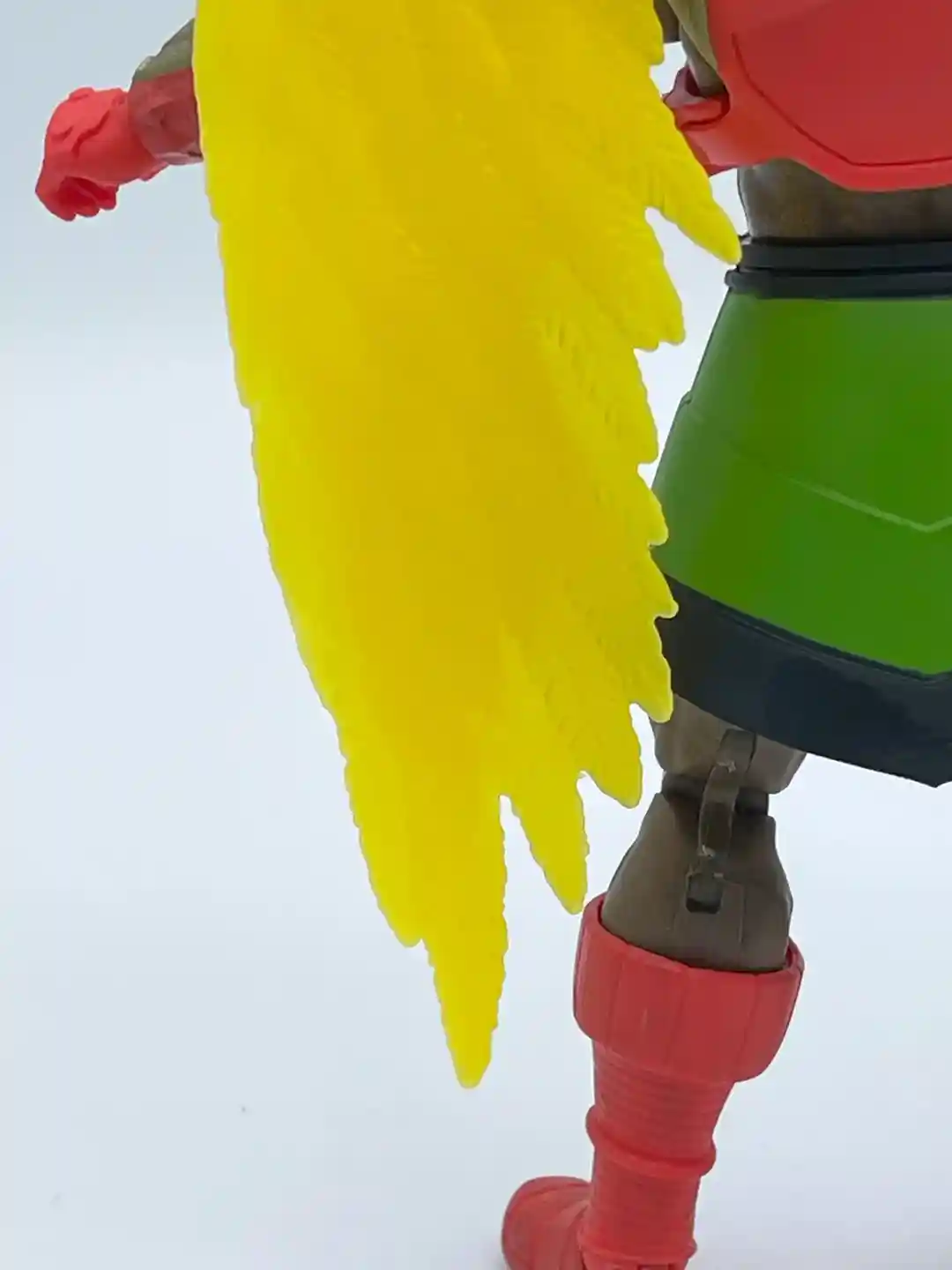 Revealed back in Mid March, 2022, the Masterverse Sun-Man looks absolutely stunning in his armor and yellow translucent wings! In sharp contrast to his Origins release, the Masterverse Sun-Man has been given a more angelic set of translucent yellow wings and he looks more like his version 2 release. His chest armor features a metallic gold and red color scheme that match his forearm bracers and his boots, tying everything together. Sun-Man is a stand out figure for the wave and Mattel went the extra mile to make him look the best he can so let’s check him out!