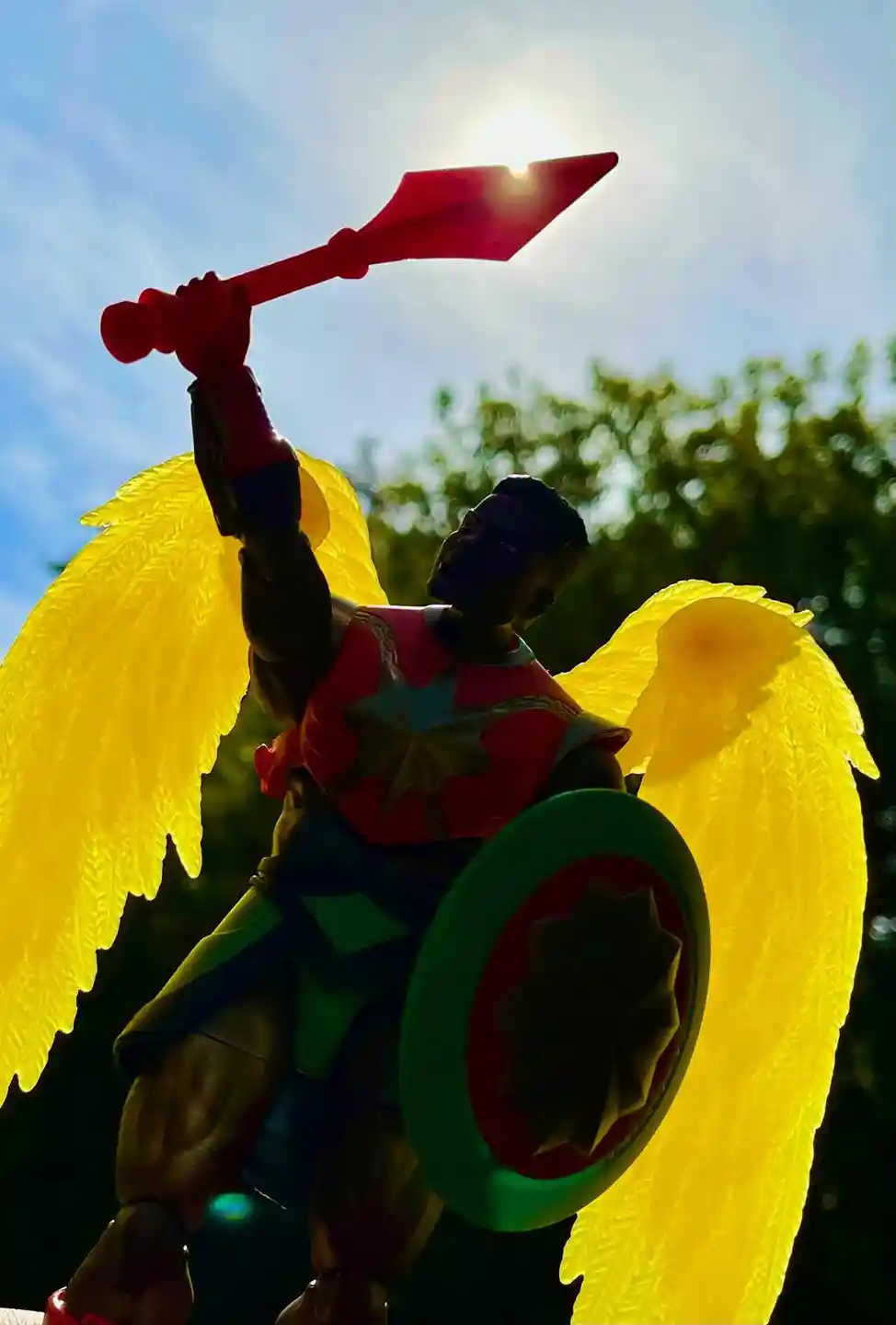 The cool thing about Sun-Man is you can give him different looks. For example, he looks amazing with his wings.
