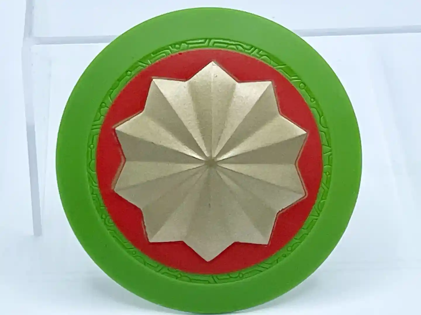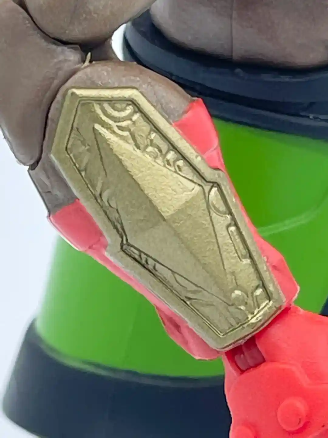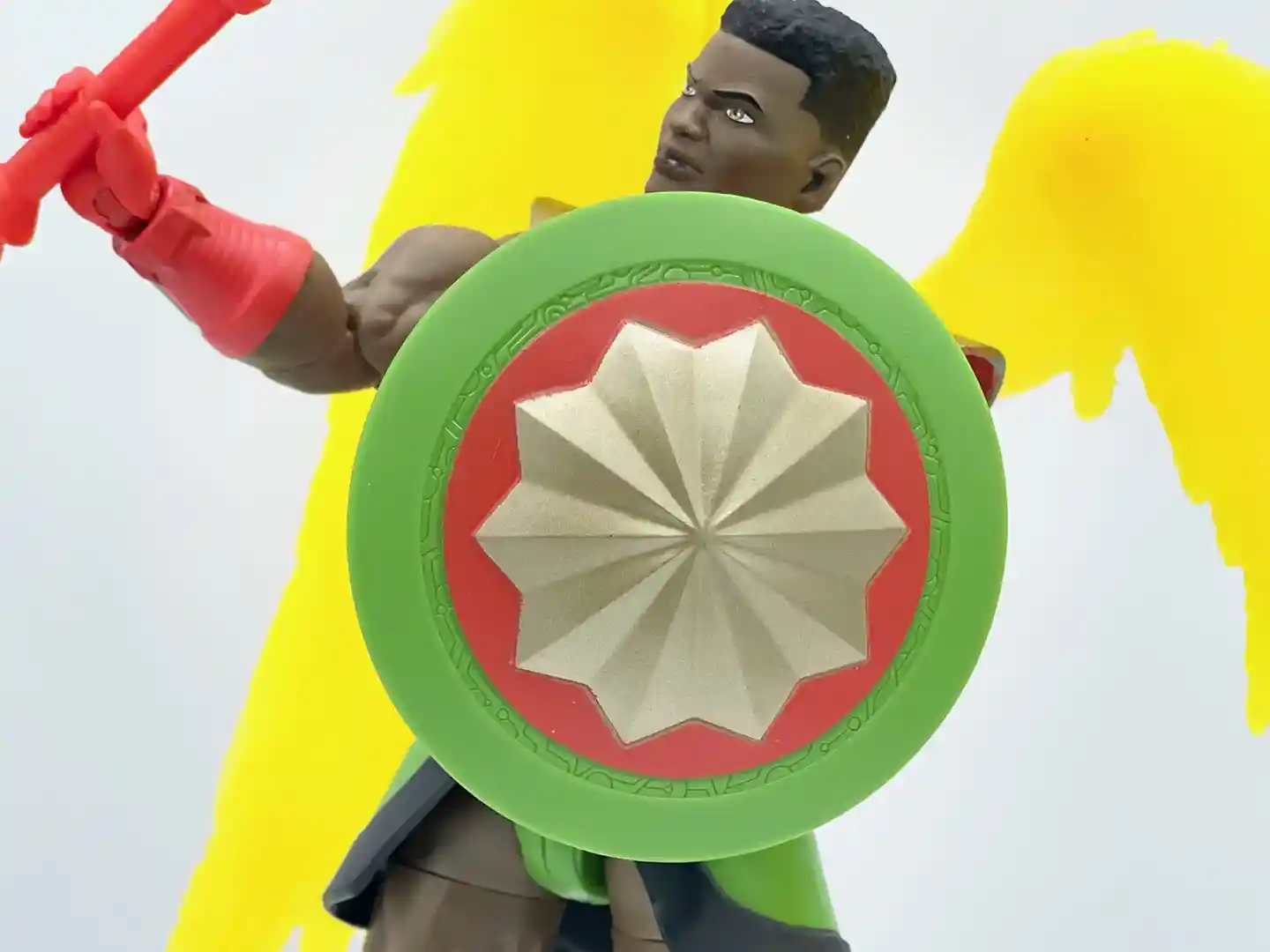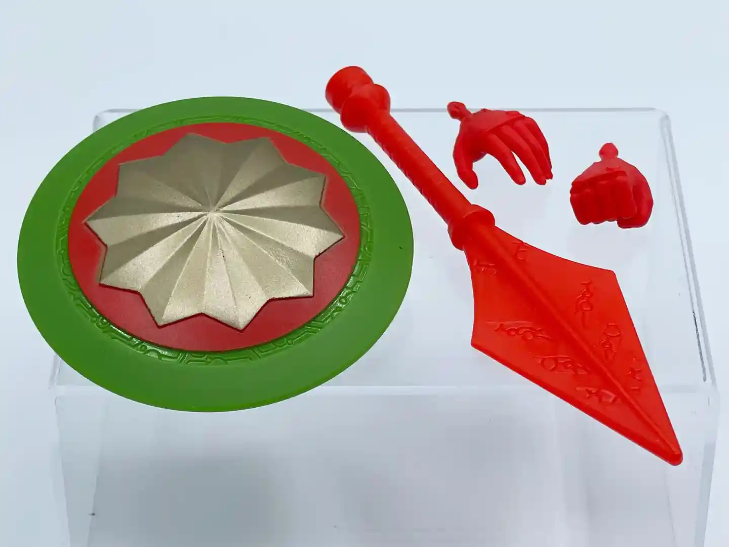 The shield is the best accessory out of the lot. The sun burst in the middle of shield features a gold paint app set off by a red background. The green part of the shield has a nice inlaid design that frames the red circle, providing that extra punch of detail we expect in the Masterverse line. The handle on the back is the standard piece that is used on most of the Masterverse figures but it is cast in green.