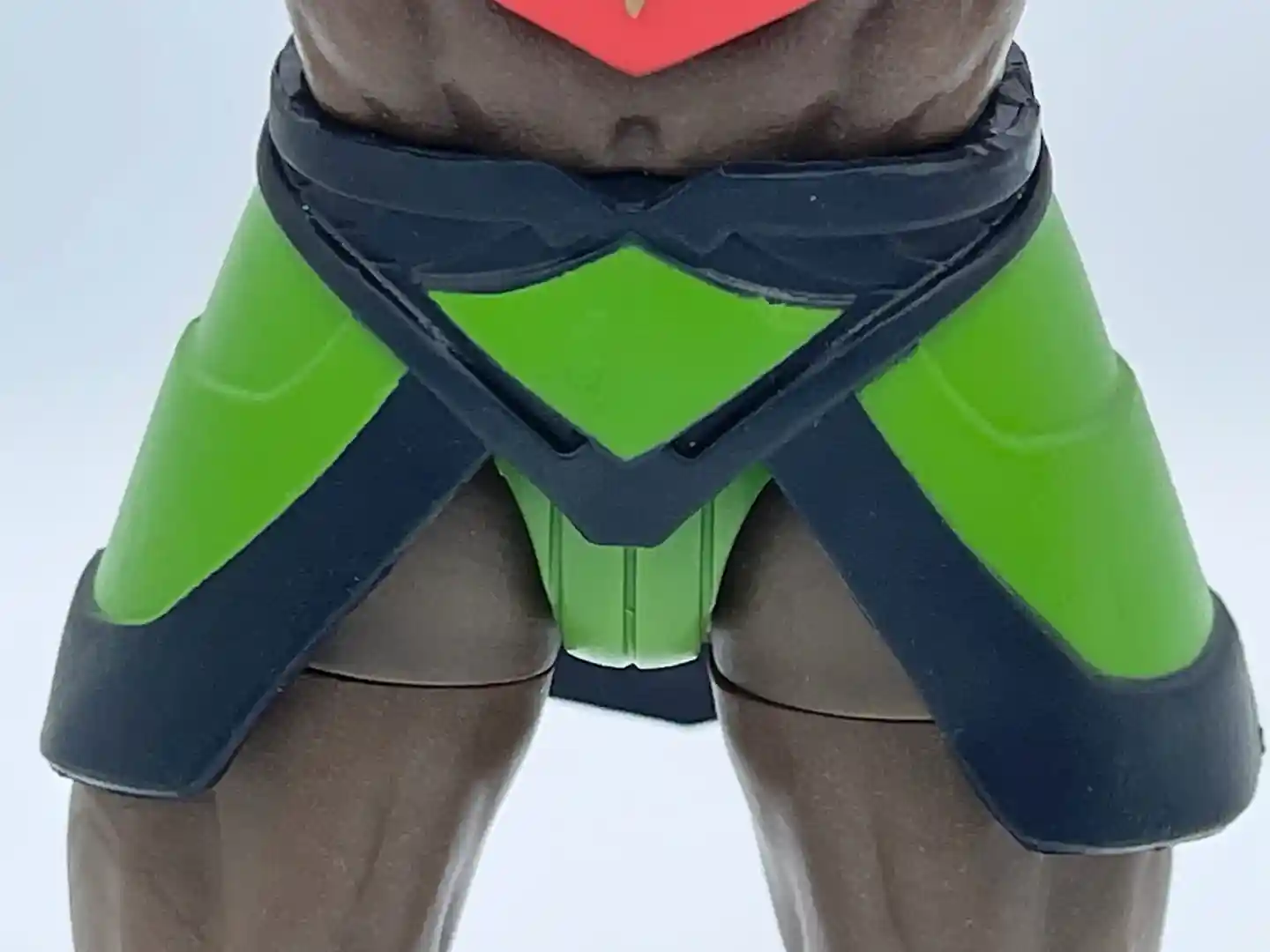 The best design also pays homage to the vintage figure with a green diamond that is framed around a black belt piece. The skirt piece is made of the soft plastic, which is mostly green with black accents. It does have the appearance of armor when you look at the detail from behind.