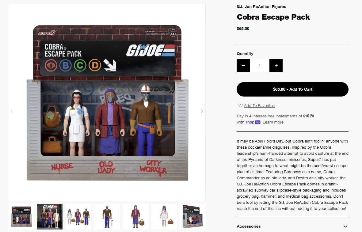 You can buy the Cobra Escape Pack at the Super7 website, when it becomes available elsewhere, we will let you know.