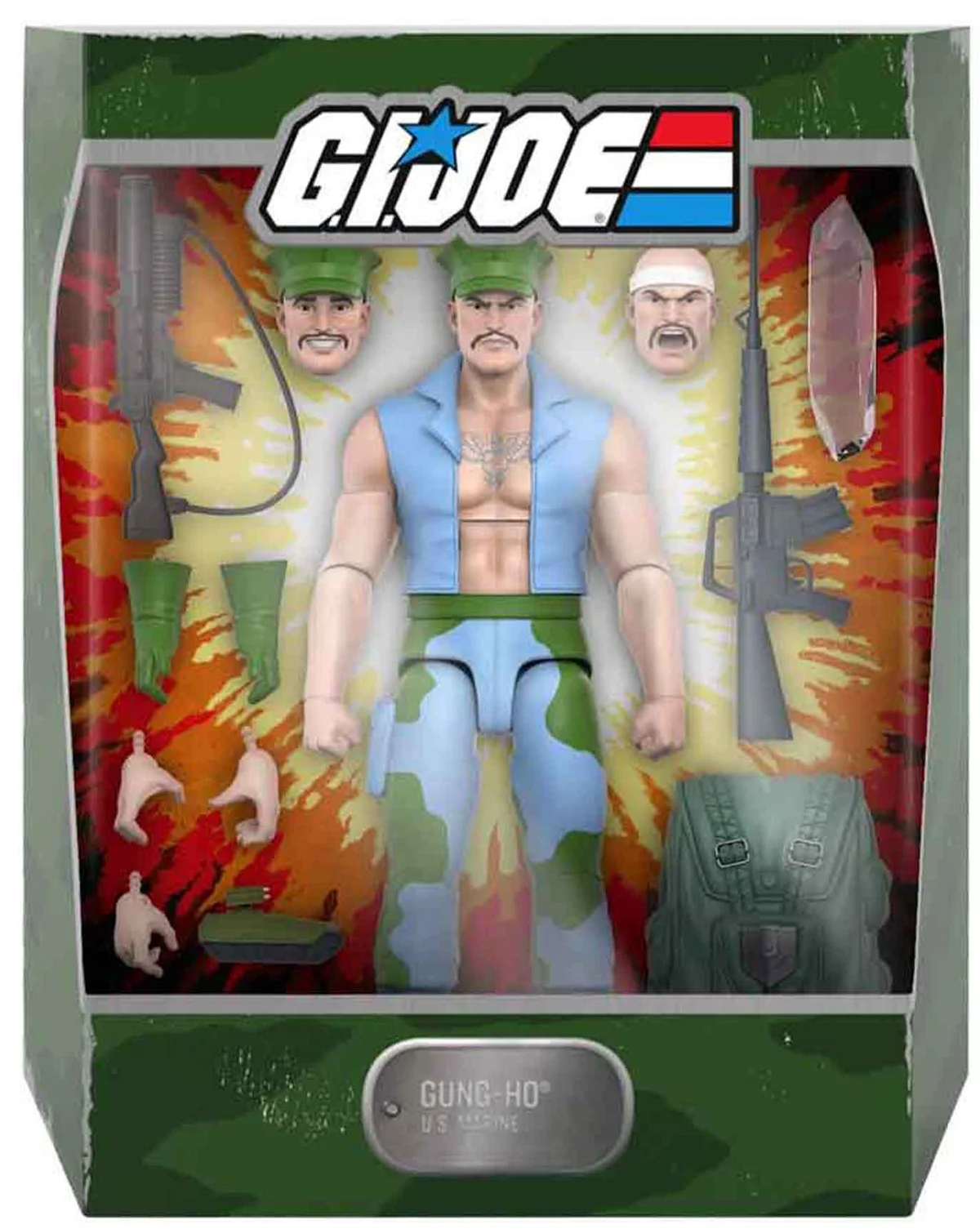 Product Description: Fearless, brave, and strong, Gung-Ho is everything you need on the front lines against Cobra! This 7” scale G.I. Joe ULTIMATES! figure of Gung-Ho features multiple interchangeable heads & hands, weapons, his backpack, a crystal, and toy tank. As the G.I. Joe team’s original Marine, the made-to-order ULTIMATES! Gung-Ho would be a strong addition to your collection!