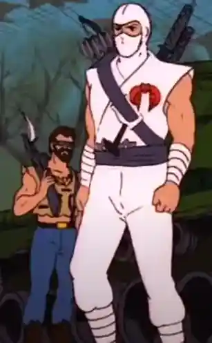 We can see what is clearly an image of Storm Shadow’s right arm; sporting the Arashikage symbol on his right wrist, in classic Sunbow cartoon style! But what is interesting is that his wrist is unwrapped and partially exposed… hinting that he might have a comic inspired look as well. As you can see below in GI Joe comic issue #21, Silent Interlude, Storm Shadow after battling Snake Eyes, ends up with right wrist strap falling off, exposing his Arashikage tatoo.